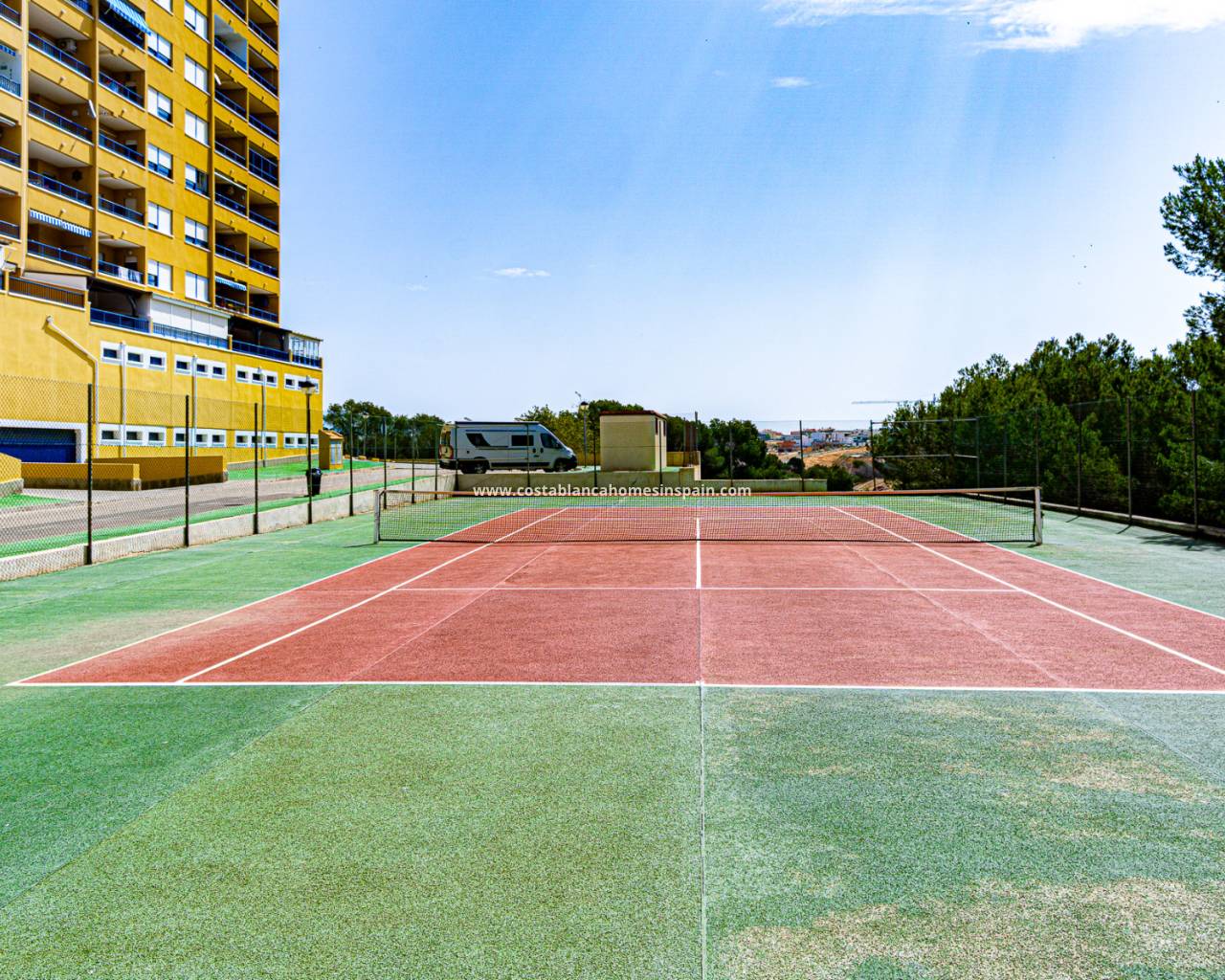 The community features fantastic shared areas, including a large swimming pool surrounded by natural grass, tennis court, picnic area, and ping-pong table, ideal for enjoying outdoor life.