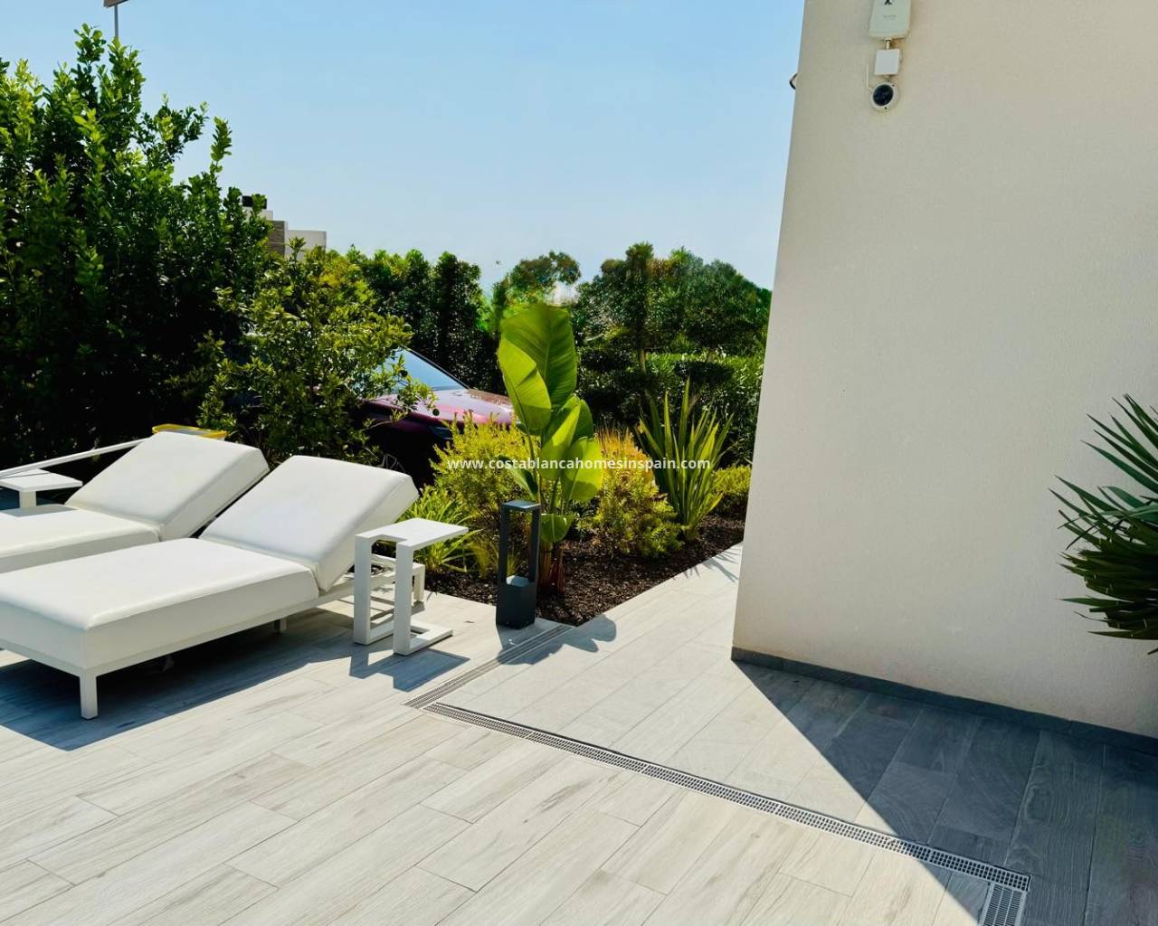 This move-in-ready villa is set on a 500 m² plot within the prestigious La Finca Golf Resort in Algorfa — one of the most sought-after golf destinations on the Costa Blanca. With its elegant design, premium finishes, and prime location, this property offers a unique living experience under the Spanish sun. Stylish Living with Premium Features The villa offers 2 spacious bedrooms, 2 sleek bathrooms with underfloor heating, a guest toilet, and an open-plan living area filled with natural light. A third room is currently used as a dressing room or office but can easily be converted into an extra bedroom. The modern kitchen is fully equipped with high-end appliances from brands like Miele and Liebherr — a clear mark of quality. Outdoor Comfort & Privacy Enjoy Mediterranean living in the beautifully landscaped garden with palm trees, flowers, and fruit trees. The east-facing terrace with a built-in BBQ is ideal for relaxed outdoor dining, while the private pool with wide entry steps offers the perfect spot to unwind. Residents also have access to a shared pool within the community. Additional Features Include: Smart home system (lighting, blinds, and more) Electric shutters Air conditioning & alarm system Charging point for electric vehicles Satellite TV and sun awning Prime Location – La Finca Golf Set within a well-maintained resort with a championship 18-hole golf course, luxury hotel, spa, fitness center, and tennis/padel courts. Just 15 minutes from the sandy beaches of Guardamar and 35 minutes from Alicante Airport. Note: Furniture is not included but may be purchased separately. Don’t miss the opportunity to own this one-of-a-kind villa in a prime Costa Blanca location. Contact us today to schedule a viewing!