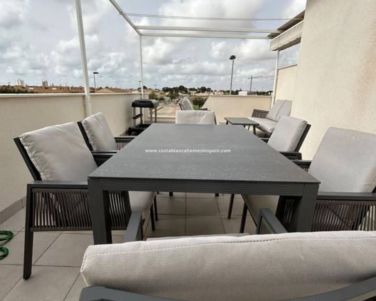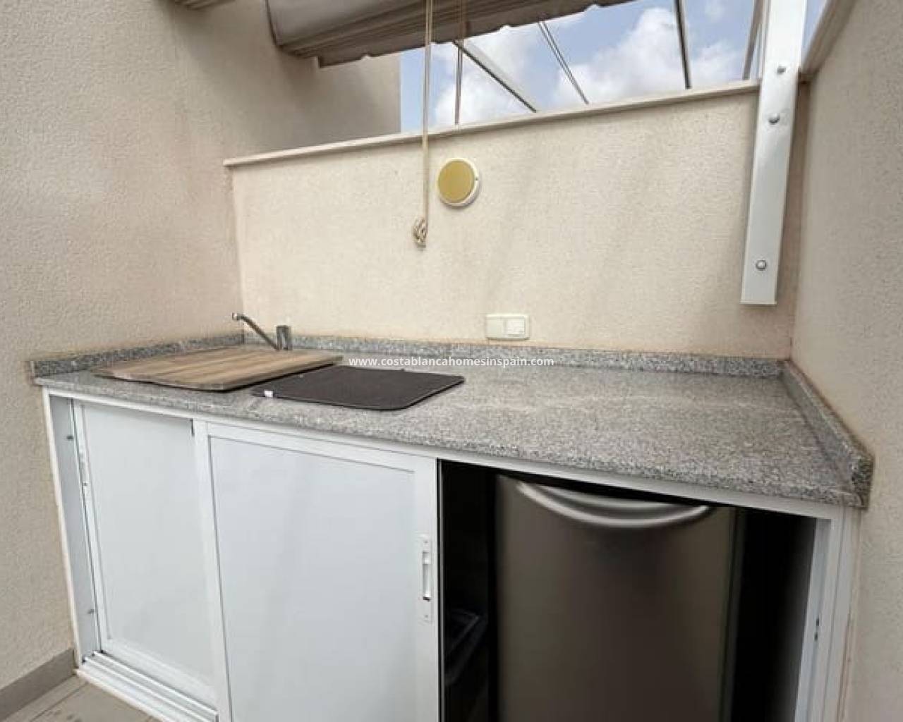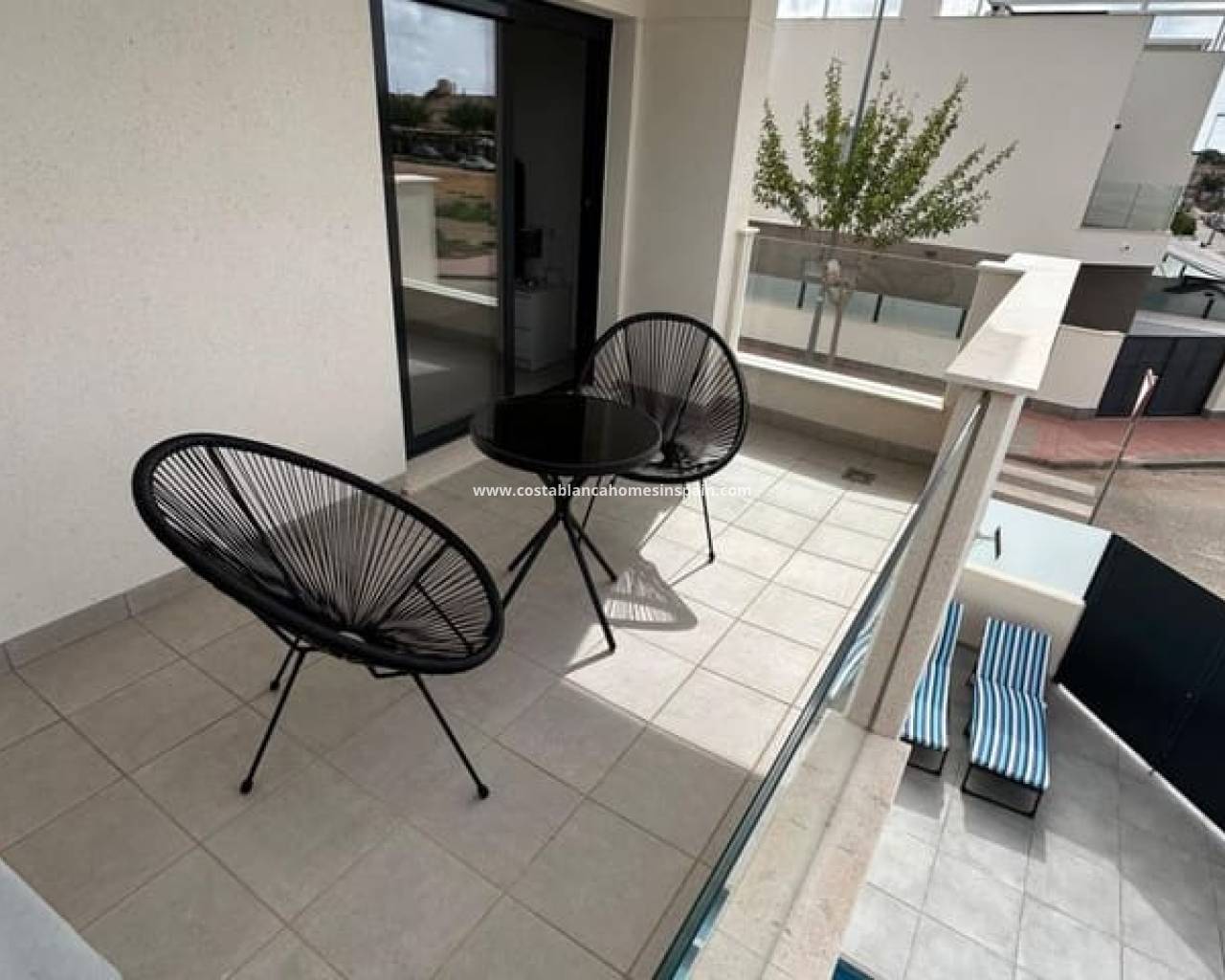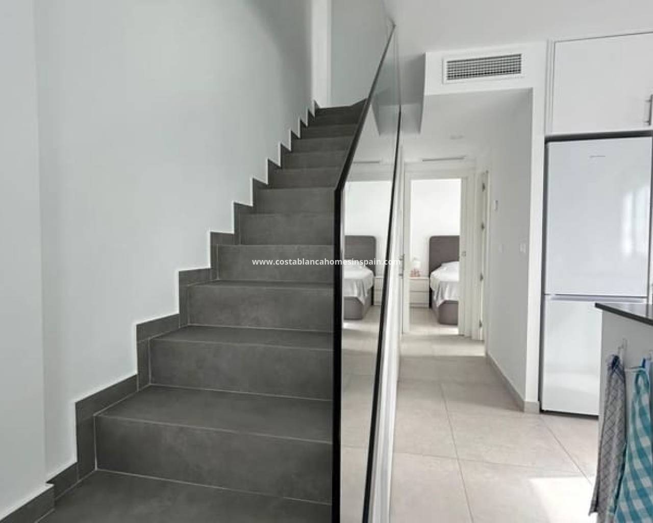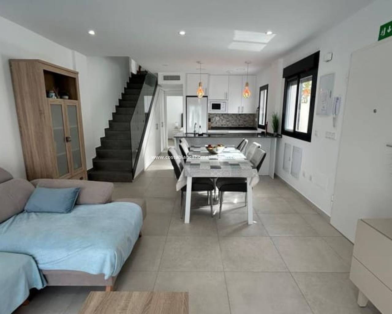 3 bedroom, 2 bathroom semi-detached south/east facing villa with private pool and private solarium in Santiago de la Ribera. Large plot with gated driveway leading to a large front terrace. The large swimming pool is to the front of the property and there is plenty of space for dining, sunbathing. The house has a large living room with views to the pool and a modern open plan fully fitted kitchen. Beyond the kitchen is a double bedroom with fitted wardrobes and a door leading to the side terrace. There is also a modern shower room on the ground floor. On the first floor are two double bedrooms with fitted wardrobes. The bedroom to the front of the house has access to a terrace. Also on this first floor is a modern shower room. There are stairs from the first floor leading you to your own private roof solarium with outdoor kitchen area. Another amazing outdoor living space. This house is only two years old and will be sold fully furnished. It's within walking distance to the beach and a short drive to the Dos Mares shopping mall and Pinatar retail park. Murcia airport is about a 30 min drive and Alicante is about a 1 hour drive. There is also some bars, cafes near to the property too. Santiago de la Ribera is a beautiful city on the banks of the Mar Menor. It is the coastal area of the city of San Javier and started as a simple fishing village. It has now become a popular holiday destination, attracting not only Spaniards but also tourists from all over Europe. Santiago has a modern feel, although it still retains its 'fishing village' atmosphere. It has a very beautiful promenade with majestic palm trees and 2 kilometers of beautiful sandy beaches. From here you can take a boat trip across the calm waters of the Mar Menor, to the La Manga Strip on the other side. The main shopping area is really in the town of San Javier, but there are some shops in the narrow streets to browse, try it on a Wednesday morning when there is a large street market.