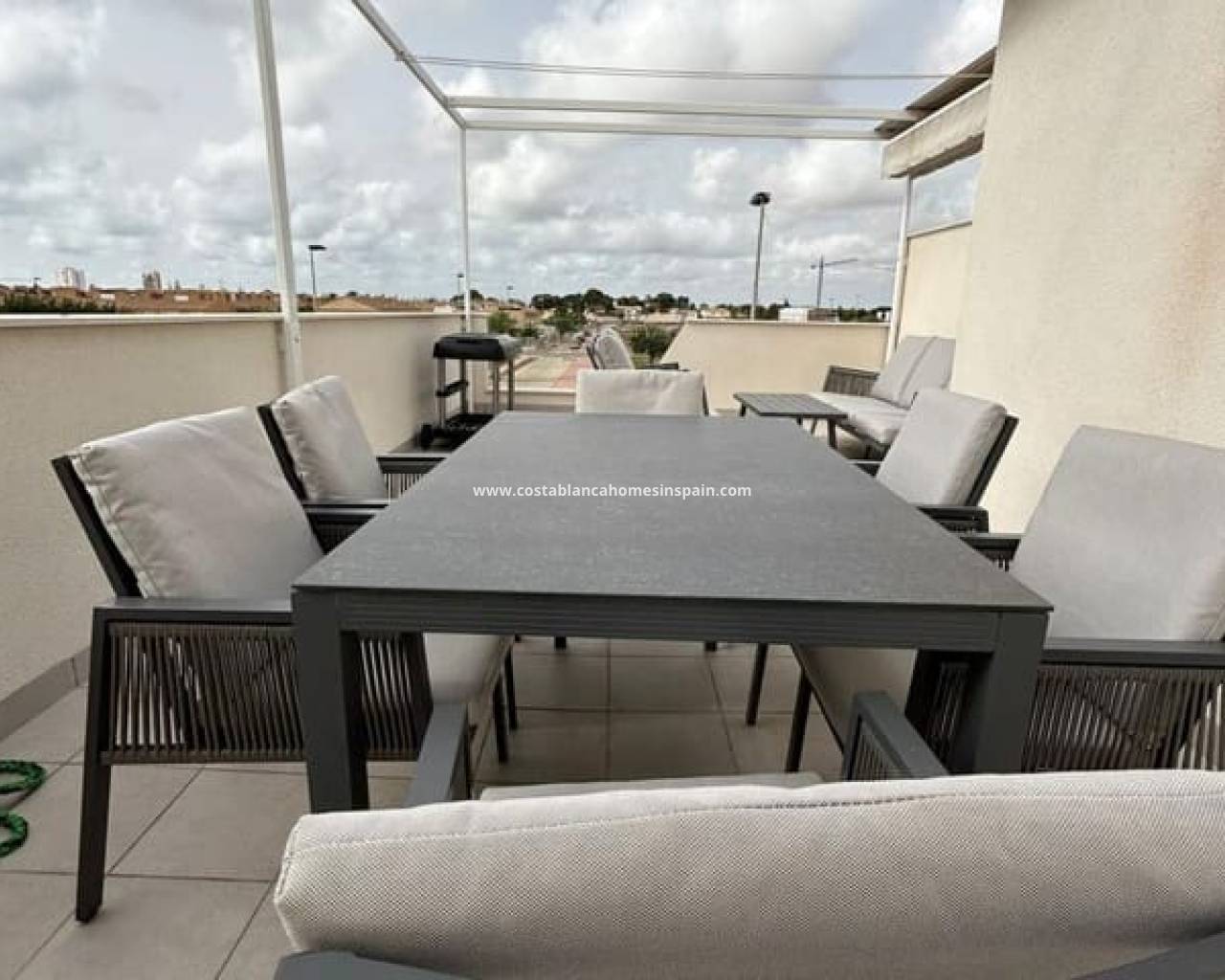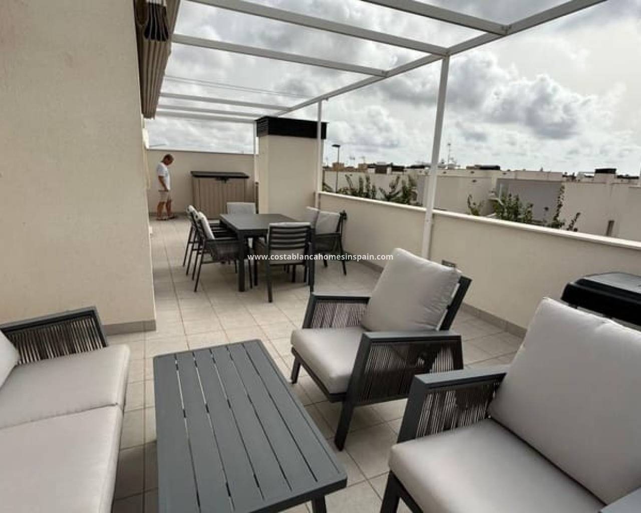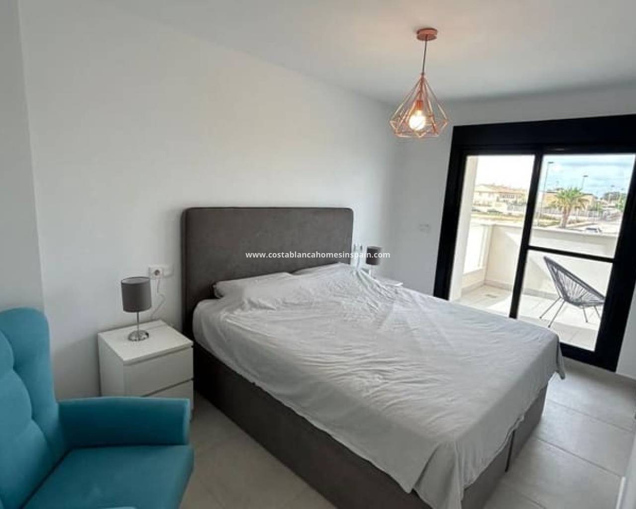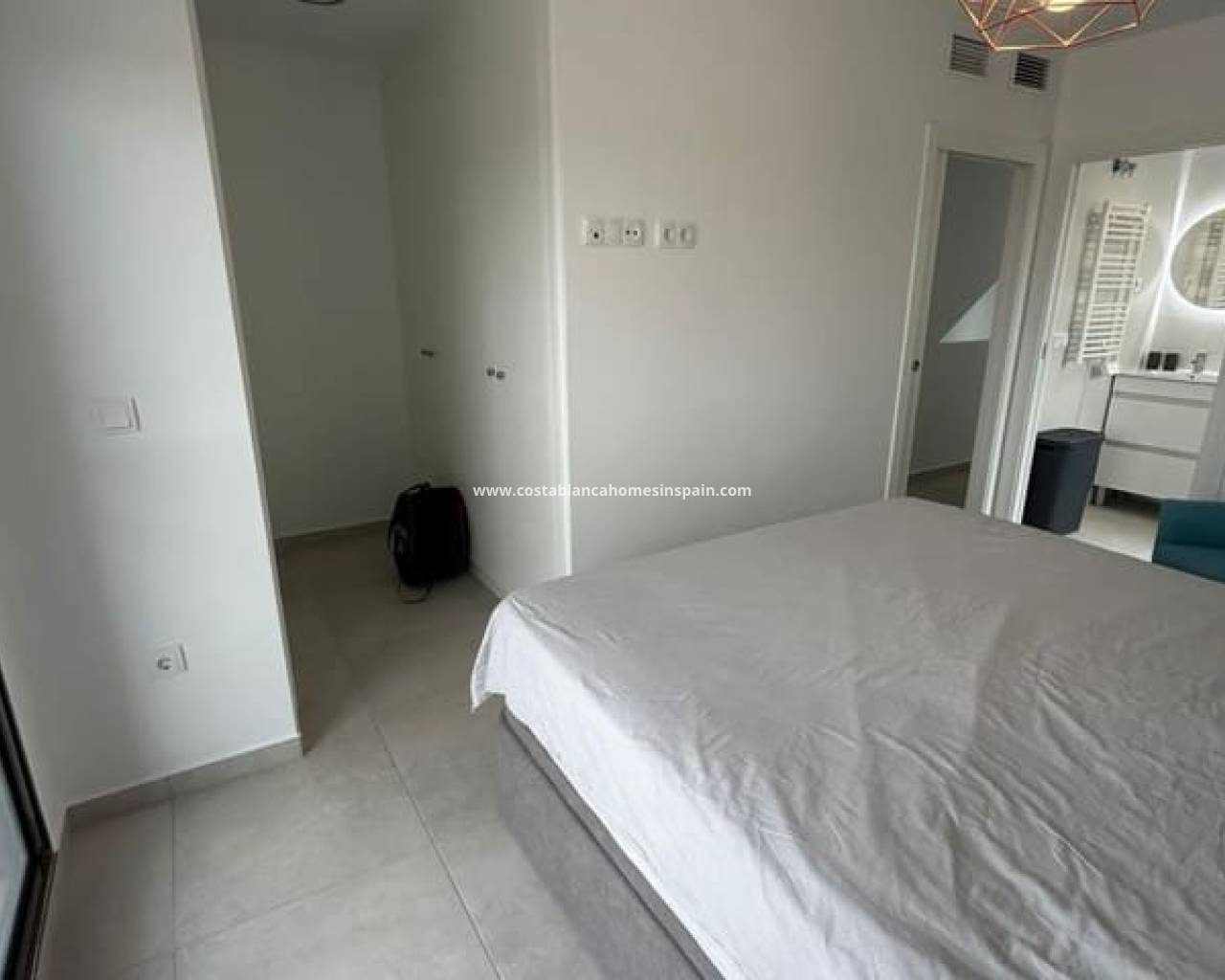 3 bedroom, 2 bathroom semi-detached south/east facing villa with private pool and private solarium in Santiago de la Ribera. Large plot with gated driveway leading to a large front terrace. The large swimming pool is to the front of the property and there is plenty of space for dining, sunbathing. The house has a large living room with views to the pool and a modern open plan fully fitted kitchen. Beyond the kitchen is a double bedroom with fitted wardrobes and a door leading to the side terrace. There is also a modern shower room on the ground floor. On the first floor are two double bedrooms with fitted wardrobes. The bedroom to the front of the house has access to a terrace. Also on this first floor is a modern shower room. There are stairs from the first floor leading you to your own private roof solarium with outdoor kitchen area. Another amazing outdoor living space. This house is only two years old and will be sold fully furnished. It's within walking distance to the beach and a short drive to the Dos Mares shopping mall and Pinatar retail park. Murcia airport is about a 30 min drive and Alicante is about a 1 hour drive. There is also some bars, cafes near to the property too. Santiago de la Ribera is a beautiful city on the banks of the Mar Menor. It is the coastal area of the city of San Javier and started as a simple fishing village. It has now become a popular holiday destination, attracting not only Spaniards but also tourists from all over Europe. Santiago has a modern feel, although it still retains its 'fishing village' atmosphere. It has a very beautiful promenade with majestic palm trees and 2 kilometers of beautiful sandy beaches. From here you can take a boat trip across the calm waters of the Mar Menor, to the La Manga Strip on the other side. The main shopping area is really in the town of San Javier, but there are some shops in the narrow streets to browse, try it on a Wednesday morning when there is a large street market.