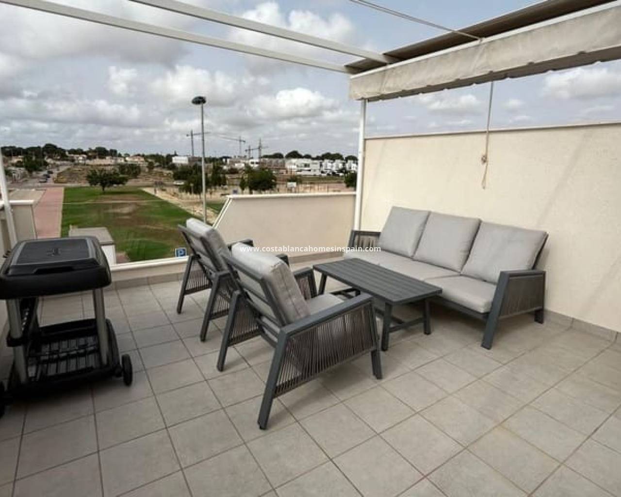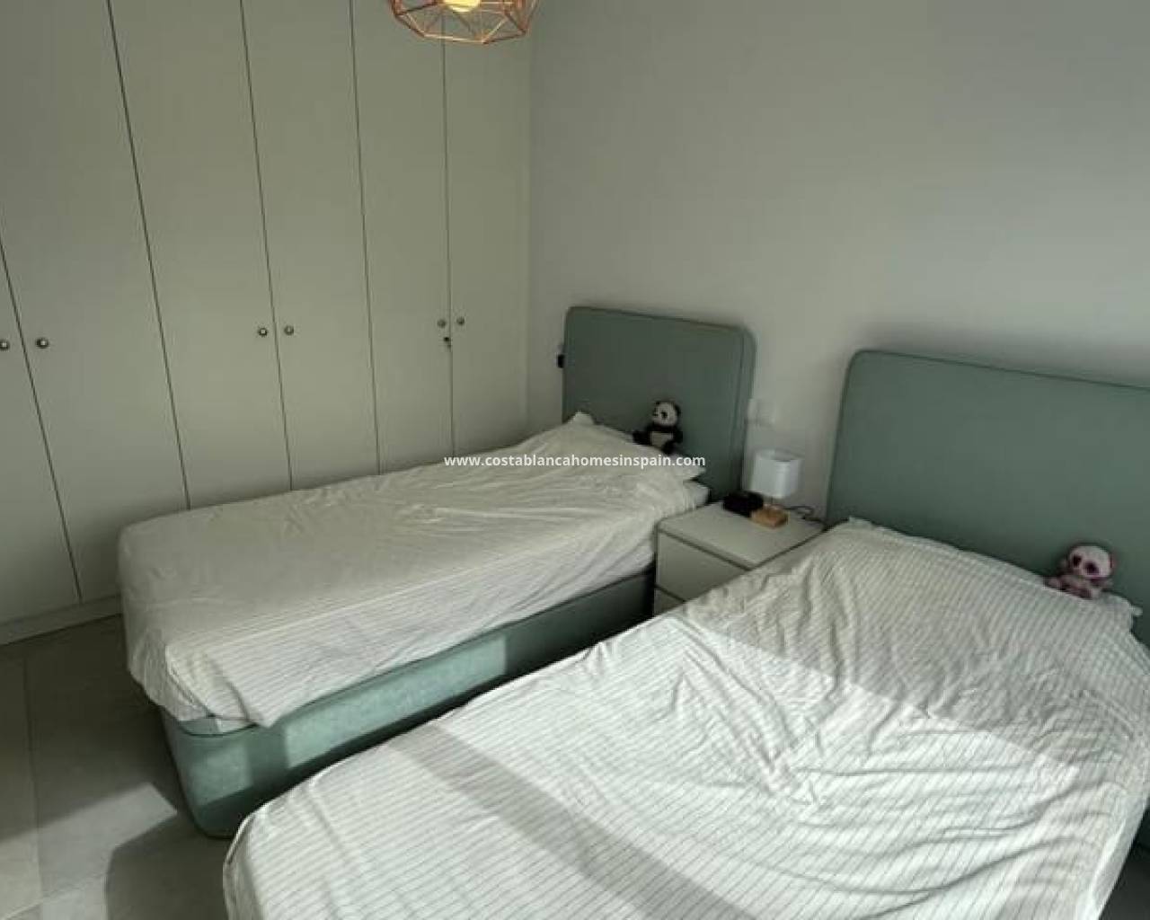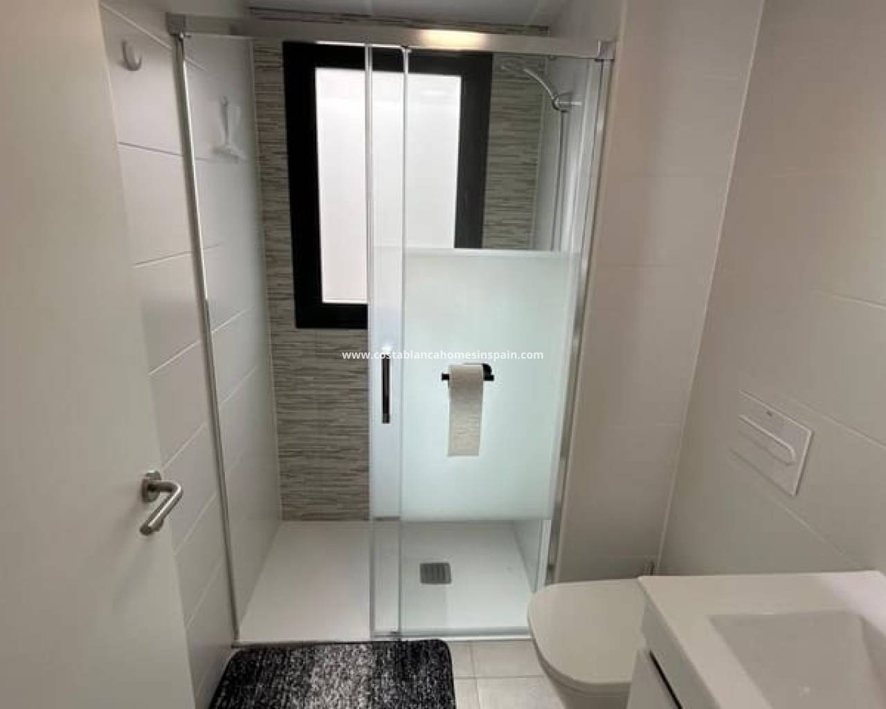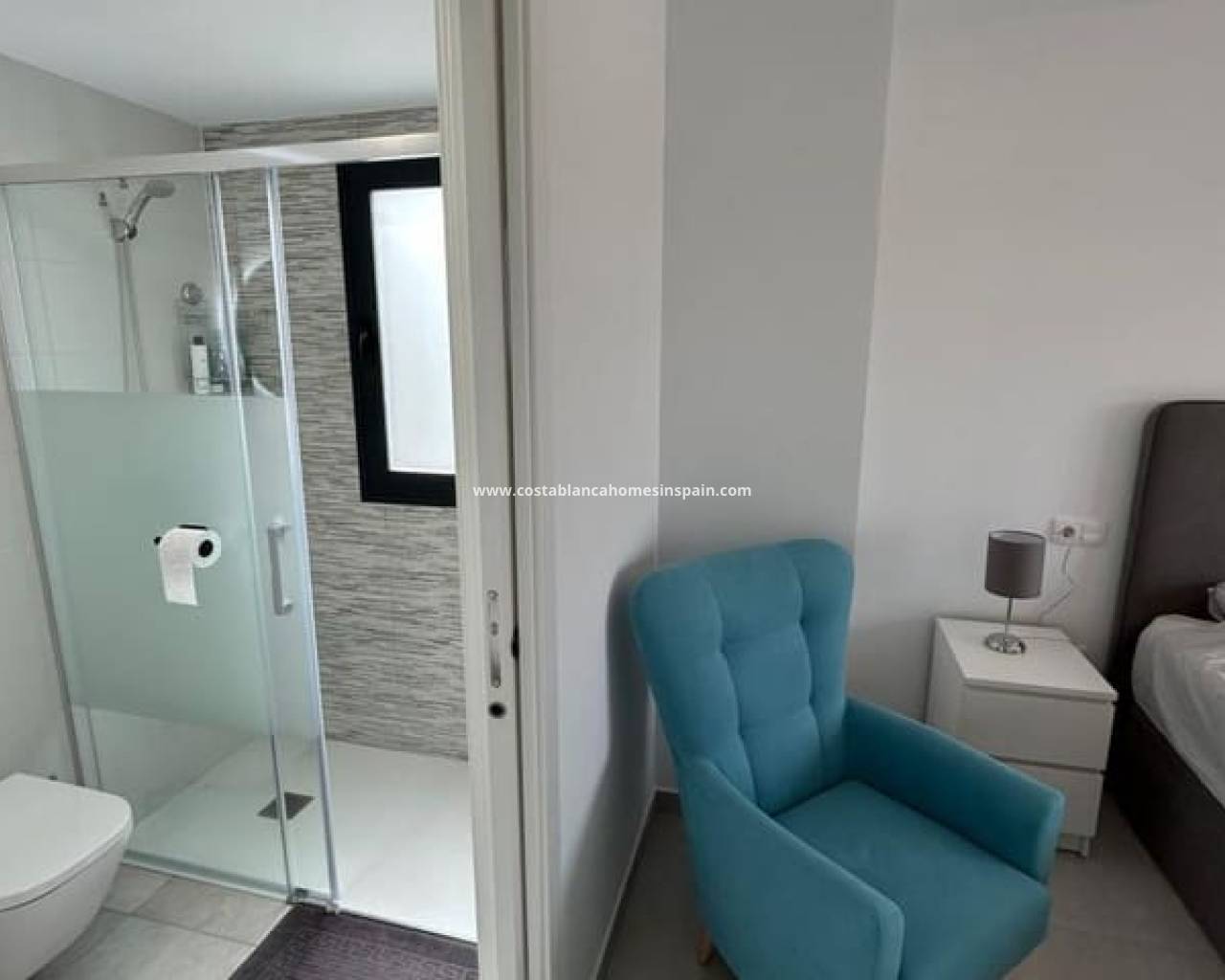 3 bedroom, 2 bathroom semi-detached south/east facing villa with private pool and private solarium in Santiago de la Ribera. Large plot with gated driveway leading to a large front terrace. The large swimming pool is to the front of the property and there is plenty of space for dining, sunbathing. The house has a large living room with views to the pool and a modern open plan fully fitted kitchen. Beyond the kitchen is a double bedroom with fitted wardrobes and a door leading to the side terrace. There is also a modern shower room on the ground floor. On the first floor are two double bedrooms with fitted wardrobes. The bedroom to the front of the house has access to a terrace. Also on this first floor is a modern shower room. There are stairs from the first floor leading you to your own private roof solarium with outdoor kitchen area. Another amazing outdoor living space. This house is only two years old and will be sold fully furnished. It's within walking distance to the beach and a short drive to the Dos Mares shopping mall and Pinatar retail park. Murcia airport is about a 30 min drive and Alicante is about a 1 hour drive. There is also some bars, cafes near to the property too. Santiago de la Ribera is a beautiful city on the banks of the Mar Menor. It is the coastal area of the city of San Javier and started as a simple fishing village. It has now become a popular holiday destination, attracting not only Spaniards but also tourists from all over Europe. Santiago has a modern feel, although it still retains its 'fishing village' atmosphere. It has a very beautiful promenade with majestic palm trees and 2 kilometers of beautiful sandy beaches. From here you can take a boat trip across the calm waters of the Mar Menor, to the La Manga Strip on the other side. The main shopping area is really in the town of San Javier, but there are some shops in the narrow streets to browse, try it on a Wednesday morning when there is a large street market.