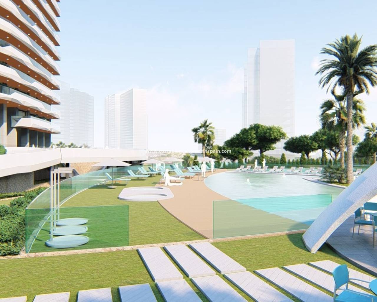 NEW CONSTRUCTION RESIDENTIAL IN PLAYA PONIENTE DE BENIDORM !!! New residential sea views with 220 homes with 2, 3 and 4 bedrooms in a glass tower with spacious terraces with views. Equipment : Appliances: Hood, Oven and touch-control induction hob, Refrigerator, Dishwasher, Washing machine, Pre-installation for dryer and microwave. Shower screen with safety glass, Mirror, Lighting with LED spotlights Air conditioner Aerothermy The common areas are equipped with an adult pool, a children's pool, a spa, jacuzzis, a chill out area, a children's play area, two paddle courts, a garage, etc. The Alicante coast is well known for its mild temperatures and its more than 300 days of sunshine a year. The city of Benidorm is known for its unbeatable hotel, sun and beach infrastructures, combined with a wide variety of traditional Spanish, Basque or Valencian cuisine as well as other international varieties adapted to all tastes and desire to experiment. It has different golf courses just 5 minutes away from Sierra Cortina, Golf Bahia, three theme parks and several shopping centers.