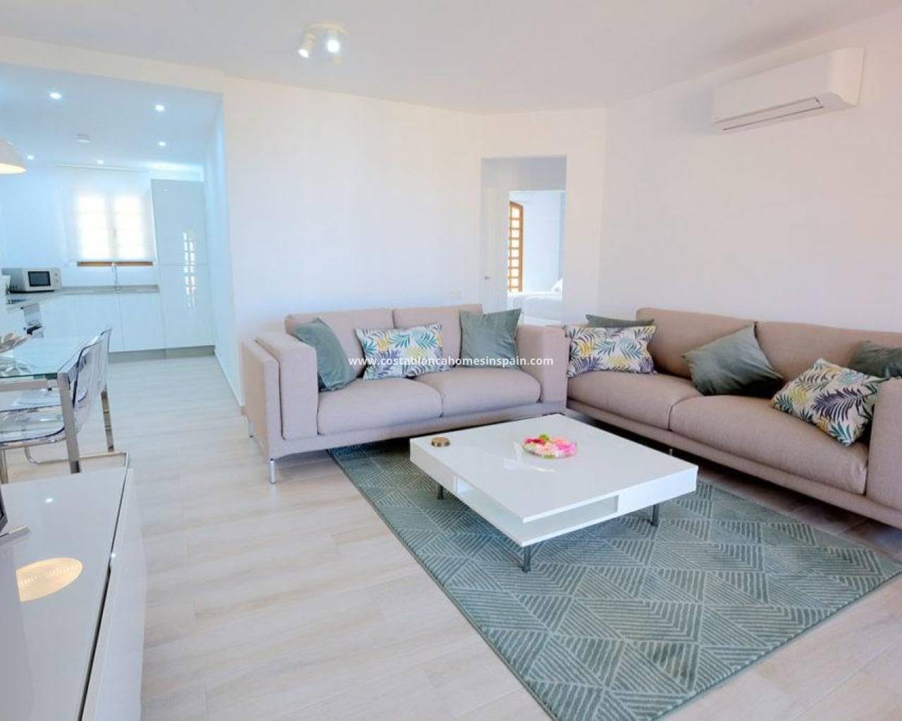 STUNNING NEW APARTMENTS IN DESERT SPRINGS RESORT Stunning three-bedroom first floor apartments located within a Spanish-style courtyard with communal swimming pool which benefit from views over the beautifully landscaped communal gardens. The exteriors have maintained the heritage of tradition, with wooden and iron verandas and balconies and a wealth of attractive external detail, while the interiors offer a stylish contemporary home with modern appeal. High quality finishings include an attractively tiled bathroom and shower room. Open-plan kitchen with a scratch and stain resistant ‘Compac’ countertop, with the fridge/freezer and washing machine integrated within the cupboards. Ceramic hob, cooker hood and microwave. Air-conditioning, double glazing, mirrored wardrobes to bedrooms with high quality sanitary ware and fittings throughout. Each property has the use of a parking area and a private roof solarium. Easy access to all resort facilities
