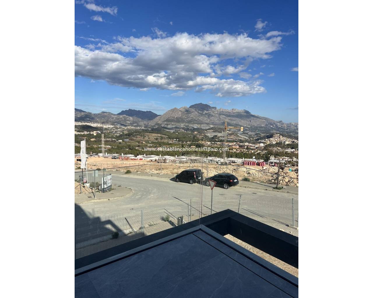 NEW BUILD TOWNHOUSES IN POLOP New Build modern townhouses and semi-detached villas with several terraces and solarium, totally fenced, with parking area for vehicles and private swimming pool in Polop. Modern properties with 3 spacious bedrooms with built-in wardrobes (the main one on the ground floor, with bathroom and dressing room en suite), 2 spacious bathrooms, large living-dining room with open kitchen, spacious terraces. Kitchen equipped with base units and silestone worktops, with ceramic hob, oven, extractor hood, fridge, washing machine, dishwasher, and aerothermal heater. First qualities: interior carpentry in wood and white lacquered laminates, exterior carpentry in anthracite grey pvc with double glazing and thermal bridge break, and automatic blinds with aluminium slats, ceramic floors of 1st quality non-slip, smooth walls, security door with 5 anchor points, large built-in wardrobes. The city of Polop offers an amazing range of options for lovers of the great outdoors surrounded by nature and unparalleled peace. The municipality enjoys a Mediterranean climate with cooler temperatures and cleaner air, located less than 10 kilometres from Benidorm, Altea and their beaches. It stretches from the rivers Guadalest and Algar to the town of Villajoyosa, including the beaches of Albir and Benidorm; inland it borders Callosa and Guadalest.