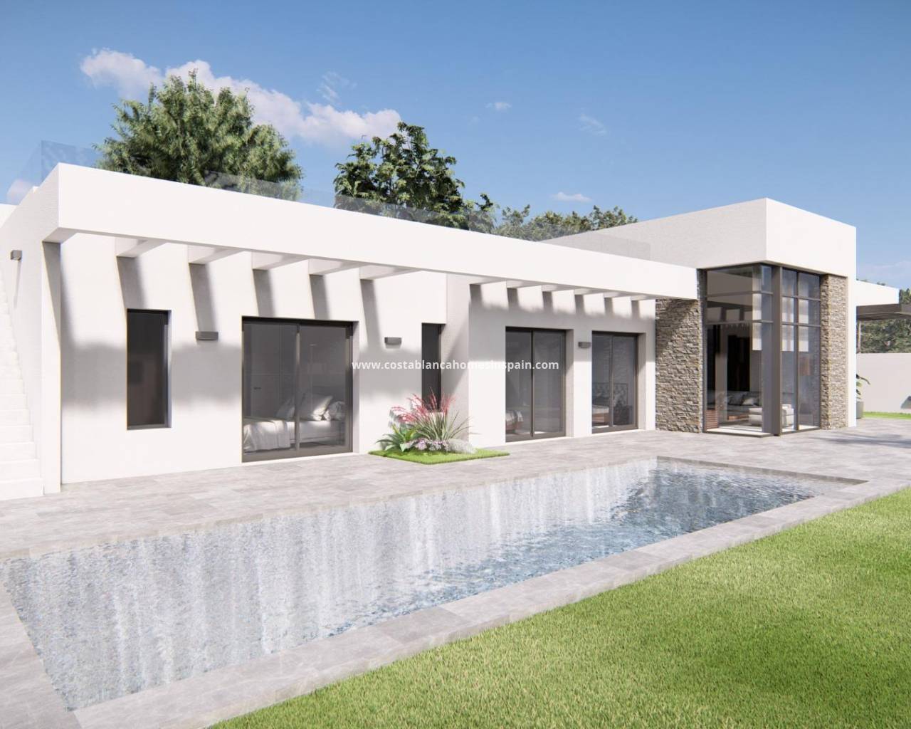 Modern New Build Villa in Doña Pepa, Rojales - Luxury Living on the Costa Blanca Exclusive Contemporary Villa in a Prestigious Residential Area This modern new build villa in Doña Pepa, Rojales offers an exceptional combination of comfort, design, and Mediterranean lifestyle. Located in one of the most sought-after areas of the Costa Blanca South, this elegant single-level villa with basement is designed to maximize space, natural light, and functionality. The peaceful residential environment is surrounded by all essential services, golf courses, and just a short drive from the best beaches of the Mediterranean. Elegant Design and Functional Layout Built on one level plus a basement, the villa features 3 bedrooms, 2 bathrooms (one en suite), and 1 guest toilet. The spacious open-plan living area connects the modern fully equipped kitchen with the dining and lounge areas, all opening onto a beautiful terrace with a private 9.5 x 3.3 m swimming pool. The basement includes a garage for two cars and additional storage space. An exterior staircase leads to a private rooftop solarium of approximately 60 m², ideal for sunbathing or enjoying panoramic views. Premium Quality and Energy Efficiency Every detail of this property reflects superior quality and comfort. The villa comes with: Furnished kitchen with high-end appliances Underfloor heating in bathrooms Aerothermal system for air conditioning and hot water LED lighting both indoors and outdoors Private landscaped garden Private parking space These features ensure optimal energy efficiency and a luxurious yet sustainable lifestyle. Perfect Location in Rojales, Costa Blanca South Doña Pepa is a prestigious urbanization within Rojales, a charming town in the Vega Baja region known for its welcoming international community and relaxed atmosphere. The villa is perfectly located: La Marquesa Golf Course: 4 km (10 minutes) Guardamar Beach: 10 km (15 minutes) Torrevieja and La Mata Beaches: 12 km Alicante International Airport: 40 km (25 minutes) Shops, restaurants, and supermarkets: within walking distance Rojales offers a perfect balance between traditional Spanish charm and modern living, with excellent services, restaurants, and a lively cultural scene. Live Your Mediterranean Dream With its contemporary architecture, high-quality finishes, and unbeatable location close to golf, beaches, and amenities, this new build villa in Doña Pepa, Rojales is the ideal home for those seeking style and comfort on the Costa Blanca. Contact us today to schedule a visit and make this exceptional property your new Mediterranean retreat.