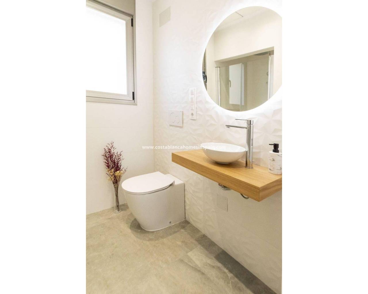 NEW BUILD VILLAS IN PILAR DE LA HORADADA ON THE GOLF COURSE New Build residential consists of 6 exclusive villas with 3 bedrooms and 3 bathrooms located on the front line of the Lo Romero golf course and only a few minutes away from the nearest beach. ⠀ In addition, each villa has its own plot with private swimming pool, parking space and terrace with solarium and summer kitchen. Pilar de la Horadada is the southernmost town and municipality on the Costa Blanca in the province of Alicante. The city is located on the border between the Comunidad Valenciana and the Murcia region. The town of Pilar de la Horadada is a typical Spanish town located just 2 km from the coast and the popular beaches of Torre de la Horadada. In the centre of Pilar de la Horadada you will find all amenities: shops, patisseries, banks, etc. along the main street 'Calle Mayor'. You will also experience a wonderful atmosphere near the local church on the 'Plaza de la Iglesia' where there are several cafes. In Pilar de la Horadada there is also a well-developed cycling and walking path network, and there is also a large offer of various sports activities. Lo Romero 18 hole golf course is just a short drive from town. The airports of Corvera (Murcia) and Alicante are respectively 40 and 55 minutes away.