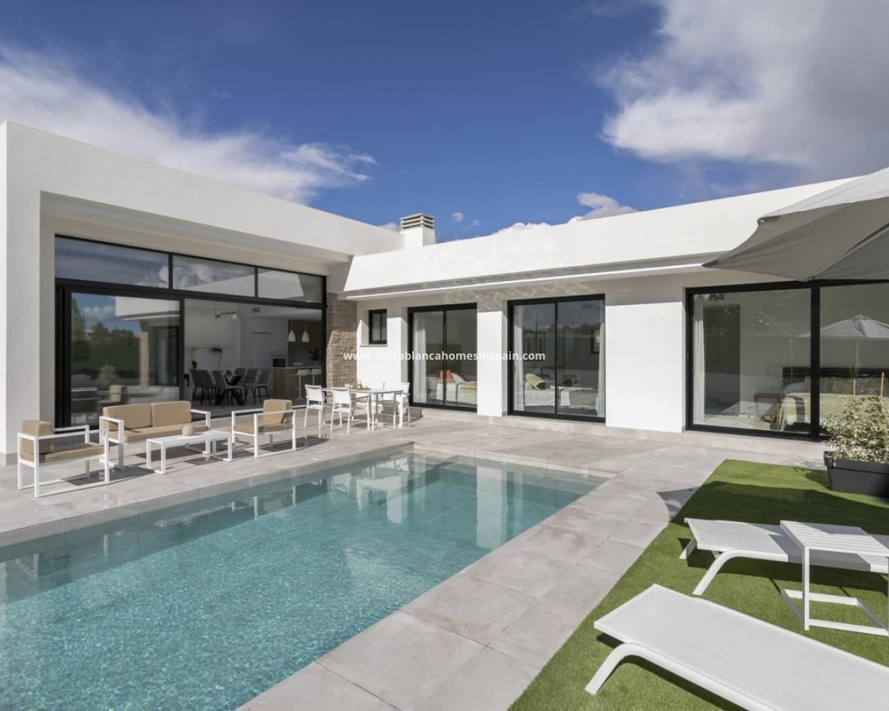 MODERN VILLAS IN CALASPARRA WITH PRIVATE POOL !!! New real estate development consisting of 215 independent villas in Calasparra. 170 villas will be built on plots of 545 m² and 45 villas on plots of 1,250 m². 2 and 3 bedroom homes with a private pool of 24.5 m2 included, modern finishes and maximum qualities: Matt black aluminum windows, motorized blinds, armored entrance door to the house, white lacquered interior doors, aerothermal system for hot water production, quartz (silestone) countertop in kitchen, electrical appliances included, pre-installation of air conditioning by ducts.