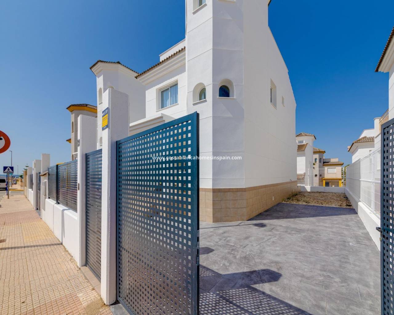 NEW BUILD RESIDENTIAL IN SAN FULGENCIO Residential complex of independent and semi-detached villas in San Fulgencio. The houses consist of 3 bedrooms, 3 bathrooms, living room and separate kitchen, 2 terraces on the ground floor, one terrace on the 2nd floor and a solarium on the roof. Each property has private garden and parking space. There is a large communal swimming pool. San Fulgencio is a comfortable and convenient area, known for its excellent infrastructure. In the immediate vicinity of cafes, restaurants, bars, pharmacies, 3 large supermarkets: Lidl, Aldi, Mercadona. Residential complex is located 10 minutes by car from the beach and also 10 minutes from the most famous in this area leisure and family center ¨La Marina Resort¨ with a water park, camping, gym, spa, restaurants, shops and cafes. Residential complex has a unique location – 30 minutes by car from the airport, 40 minutes from the city of Alicante and 20 minutes from the city of Torrevieja.