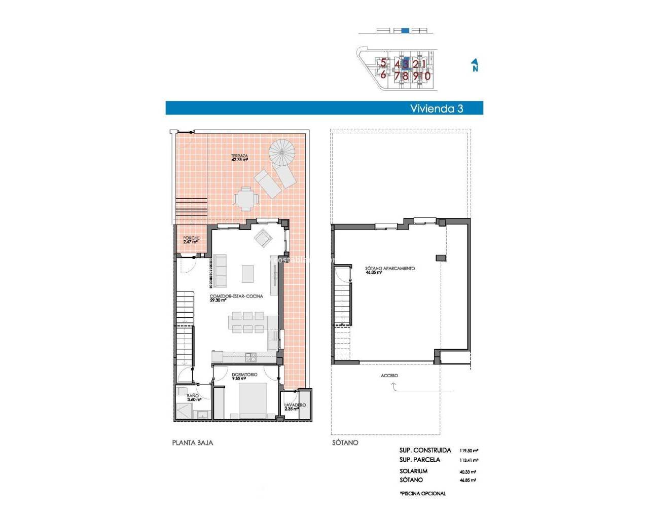 Exclusive Semi-detached Villas and Quads in Bigastro, Alicante Mediterranean Style Homes in the Heart of the Vega Baja This new residential complex in Bigastro, a charming village in the Vega Baja, offers 8 quads and 2 semi-detached villas designed in an elegant Mediterranean style. Located in a quiet and well communicated area, these properties are ideal for those looking for a perfect combination of comfort, privacy and proximity to all amenities. Spacious and Functional Design Each property has been designed to offer spaciousness and comfort, with 4 bedrooms and 3 bathrooms distributed over 2 floors. Ground floor: One bedroom, bathroom, open plan kitchen open to the living room, laundry room and access to the garden. Upstairs: 3 bedrooms, including the master bedroom with ensuite bathroom. Private solarium of 40 m², ideal for enjoying the Mediterranean climate and open views. Private garden with option of swimming pool, available for an additional cost. Private garage of more than 60 m² in basement, with direct access to the property. Bigastro: Tranquillity and Connectivity Bigastro is a cosy municipality in the south of Alicante, known for its peaceful surroundings and its excellent connection to the main towns and beaches of the Costa Blanca. Orihuela - 5 km (5 minutes by car). Guardamar beaches - 25 km (15 minutes by car). Torrevieja - 30 km (25 minutes by car). Alicante Airport - 55 km (30 minutes by car). Zenia Boulevard Shopping Centre - 30 km (25 minutes by car). The municipality has all the essential services, such as supermarkets, schools, sports centres and a rich gastronomic offer, which makes it a perfect place both for permanent residence and to enjoy a second home. Discover Your New Home on the Costa Blanca If you are looking for a modern and spacious home in a quiet but well-connected location, these villas and quads in Bigastro are the ideal choice. Contact us today for more information or to arrange a viewing.