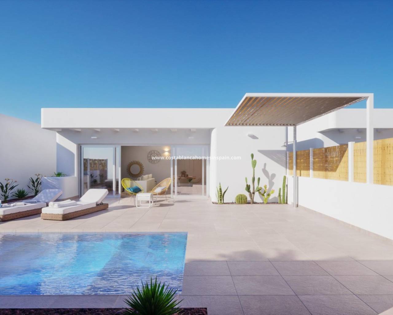 NEW BUILD VILLAS IN LOS ALCAZARES New Build villas in Los Alcazares . Ibiza style New Build villas on an independent plots with terrace, parking area and private pool. The house has a living room, kitchen, 3 bedrooms, 2 bathrooms, and has privileged views. An options for a private solarium at an extra cost. Carefully designed housing with high quality materials to satisfy the most demanding clients. Villas located 1 km from the beach and the town of Los Alcázares, where you can practice various water sports, surrounded by several golf courses. City of Cartagena less than 15 minutes by car and 30 minutes from Murcia Corvera airport.
