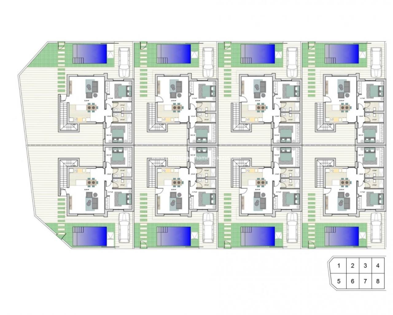 NEW BUILD SEMI-DETACHED VILLAS IN ROLDAN New Build luxury complex of one or two levels semi-detached villas in Roldan. You have an option of semi-datached villas with 2 bedrooms, 2 bathrooms build over one floor with solarium or with 3 bedrooms, 3 bathrooms build over two floors with lalrge terrace. On the top floor, on the terrace or solarium you will have a summer kitchen that allows you to enjoy all hours of sunshine, every day of the year. All villas has private garden with with pool and parking space. Designed with a contemporary style and open planned concept, comprising a fully-fitted kitchen and lounge-dining room. The development is located in Roldán (Murcia), within a gated and security control resort. Is near the beach, surrounded by services, parks, sports facilities and several Golf Courses. The property will meet the highest standards and will be equipped with: Private swimming pool preinstalled for heating system and with solar shower. Kitchen completely furnished and equipped with oven, microwave, fridge, integrated dishwasher and extractor fan. Also, central wooden island. Lighting: LED inside the property as well as in outdoor areas. Lined wardrobes with drawers. Fully fitted bathrooms with suspended toilet, shower screens, vanity unit, mirror with light and rainfall shower. Summer kitchen in solarium. Pre-installation for ducted air conditioning. Parking space on the plot. Roldan itself is a traditional town with all the local amenities you will need including Supermarkets, Restaurants, Bars, Health Clinic, Pharmacy, Police Station, Petrol Station, Mechanics, Dentists, Doctors and more. The nearby golf resorts of La Torre, & Terrazas are easily accessible, Corvera Airport is 15 minutes away & the beaches of the Mar Menor just 20 minutes drive.