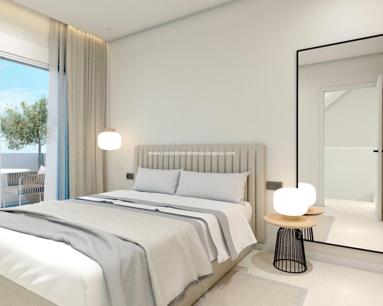 NEW BUILD VILLA IN TORRE DE LA HORADADA New Build villa in residential complex with communal pool in Torre de la Horadada located 800m from the beach. Villa has 3 bedrooms, 2 bathrooms, open plan kitchen with the lounge area, fitted wardrobes, terrace, private solarium, garden and parking space. Torre de la Horadada is located south of Alicante in a beautiful location on the coast. The beautiful beaches of Torre de la Horadada and Mil Palmeras have fine sand beautiful promenade. There are lots of restaurants, bars and shops, also water sports, diving and snorkelling. It is well connected just 40 minutes from Alicante and Murcias Corvera airports, with large commercial shopping centres and multiple golf courses all within easy reach.