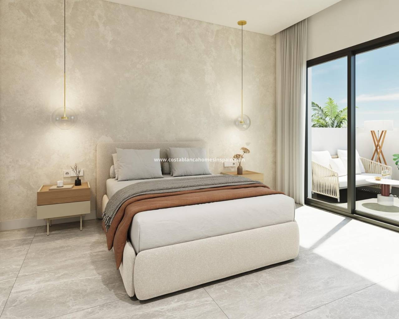 Exclusive New Build Bungalows in Pilar de la Horadada - Unique Style and Privileged Location A Unique Style that Defines your New Home This new development of 2 and 3 bedroom bungalows in Pilar de la Horadada stands out for its modern design and undulating structure, which gives each home a unique personality. You will be able to choose between: Ground floors with front garden and back patio. Top floors with private solarium. The residential complex has a communal swimming pool and spacious communal areas designed for the relaxation and enjoyment of the whole family. In addition, the development offers an outdoor gym, communal jacuzzi and parking area for bicycles, as well as a parking space assigned to each property with the option of charging electric vehicles, designed to offer you maximum comfort and quality of life. Bright and high quality interiors Each home has been designed to offer an experience of comfort and functionality. Open-plan spaces maximise the feeling of spaciousness and light, while neutral tones and wood finishes create an elegant and welcoming ambience. Spacious and bright bedrooms, with the master bedroom offering access to a private terrace. Open concept kitchen, integrated into the living room for convenience. Modern bathrooms with top quality materials. Pilar de la Horadada - Quality of Life on the Costa Blanca Located in the province of Alicante, Pilar de la Horadada is a coastal town that combines tradition with a relaxed atmosphere. It is known for its beautiful beaches, such as Playa de las Higuericas, with golden sand crystal clear Mediterranean waters. In addition to its coastline, the town has a vibrant main street lined with shops, supermarkets, restaurants and picturesque squares. Its excellent infrastructure includes cycle paths, hiking trails and a wide variety of sporting activities. Proximity to Major Points of Interest This residential development offers convenient access to the most important destinations in the area: Torre de la Horadada beach - 3 km (5 min drive). Lo Romero Golf Course - 5 km (10 min drive). La Zenia Boulevard Shopping Centre - 15 km (15 min drive). Corvera Airport (Murcia) - 40 km (40 min drive). Alicante Airport - 55 km (55 min drive). Secure your Costa Blanca Property Today Don't miss out on the opportunity to purchase a brand new property in an exceptional location. Contact us today for more information and to arrange a viewing.