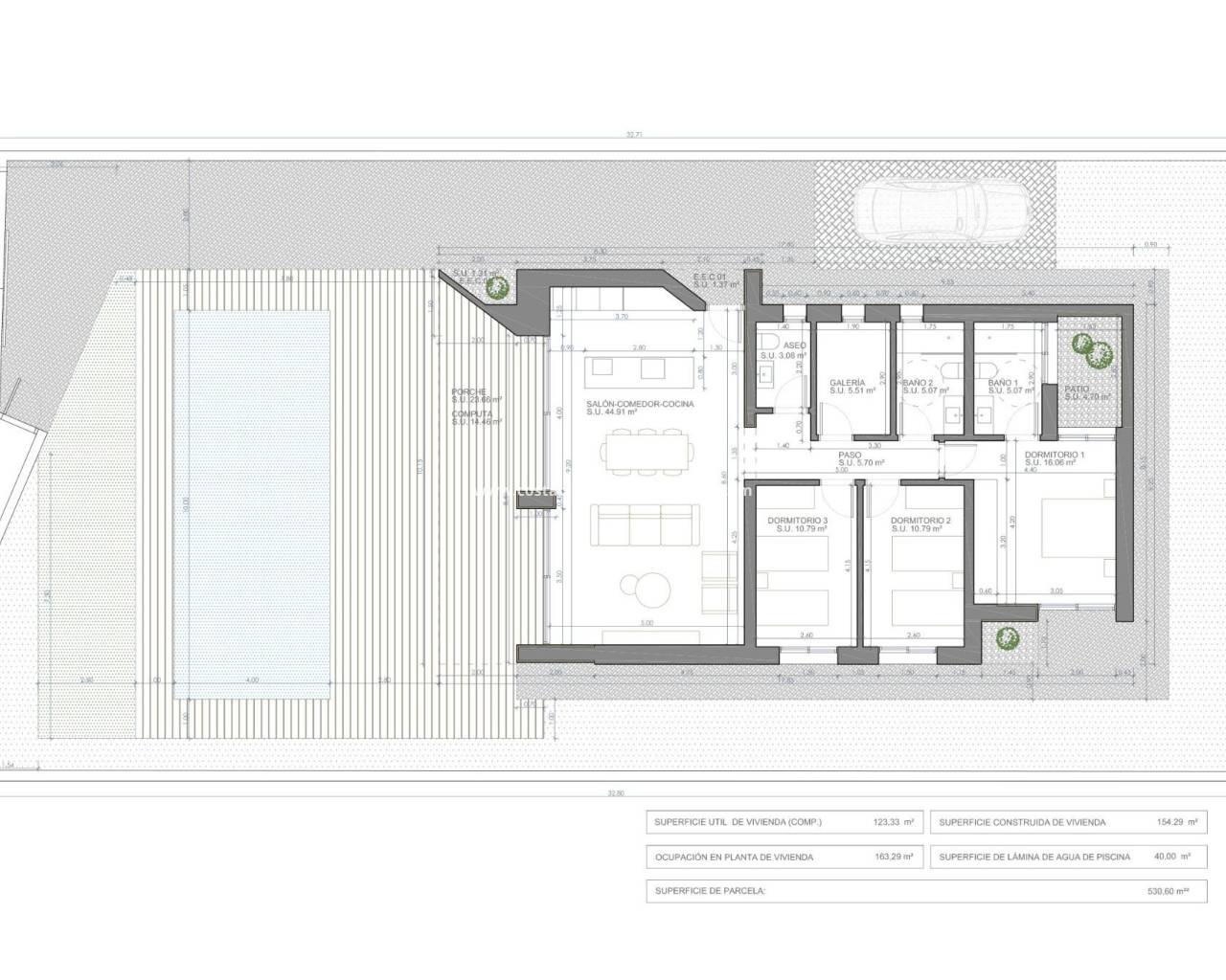 NEW BUILD MODERN VILLA IN ASPE New Build modern and innovative design villa in La Romana, Aspe. Villa with 3 bedrooms, 2 bathroom open plan kitchen with living room, terrace, private garden with the pool and parking space. The Villas are pre installed for A/C hot and cold and electric blinds to all the windows. As well you will have a choice of tiles and kitchen so the villa will be finished to your own style and colour. Near Aspe is a very special Town of La Romana within easy walking distance from our development. La Romana has a prosperous economy based on the agriculture that surrounds the town and this prosperity is reflected in the picturesque palm tree lined streets that are very well maintained. There is a medical centre, several supermarkets, hardware, shops, banks ,bakers restaurants & bars and cafes and a Saturday street market where you can buy locally grown vegetables and fresh fish. The region is renowned for the growing of eating grapes and also producing a wide range of wines which can be sampled in the traditional bars along with many different tasty local tapas and you can also visit the many Bodegas that are closely to the Town. For golf lovers there are two excellent golf courses Font de Llop in Aspe and Alenda Golf in Monforte del Cid just 15 minutes drive. The beaches and Alicante Airport are closely just 30 minutes drive La Romana is a safe and friendly place to live and owning a property in La Romana puts you at the heart of a genuine community – with all the amenities you need for day-to-day living on your doorstep.