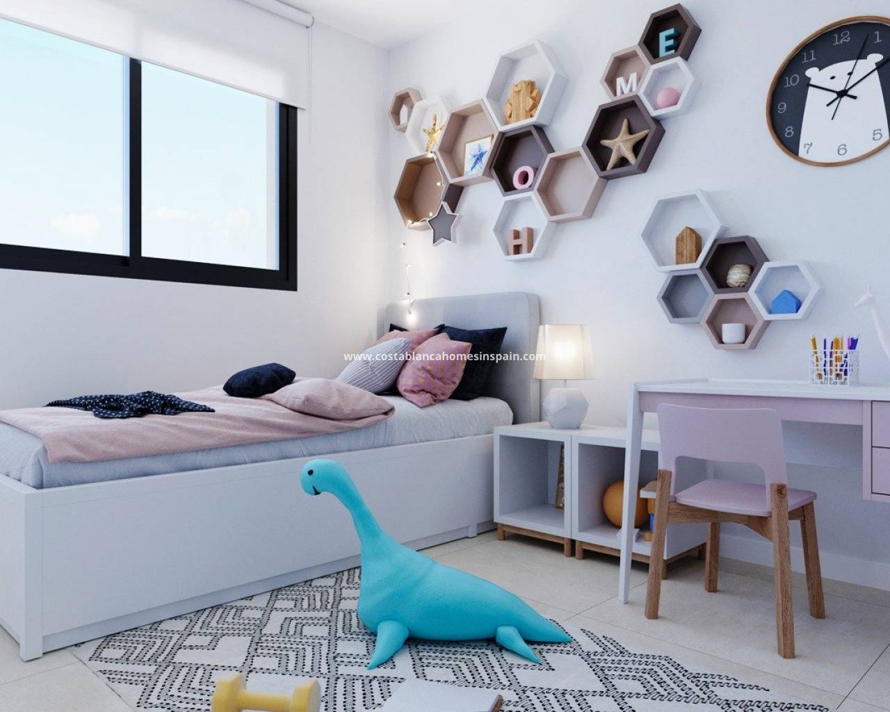 NEW BUILD RESIDENCIAL IN LOS BALCONES, TORREVIEJA New Build residential complex of semi-detached villas and bungalows located in Los Balcones with the views to the pink lake. New Build top floor bungalows has 2 bedrooms, 2 bathrooms, open plan kitchen with spacious living room, fitted wardrobes, terrace, private solarium and underground parking space. New exclusive residential with big communal areas; gardens, garden-gym, playground, 2 big communal swimming pools - one of them for adults, and the other one for children. Los Balcones is a small town located near Torrevieja south. Torrevieja is a Spanish town in the province of Alicante, on the Costa Blanca. It is known for its typically Mediterranean climate and coastline. It has boardwalks with resorts along its sandy beaches. The small Museum of the Sea and Salt houses exhibitions on the fishing and salt history of the city. In the interior, the Lagunas de La Mata-Torrevieja Natural Park has trails and two salty lagoons, one pink and the other green. Alicante airport located 40 minutes away and Murcia airport about 1 hour away.