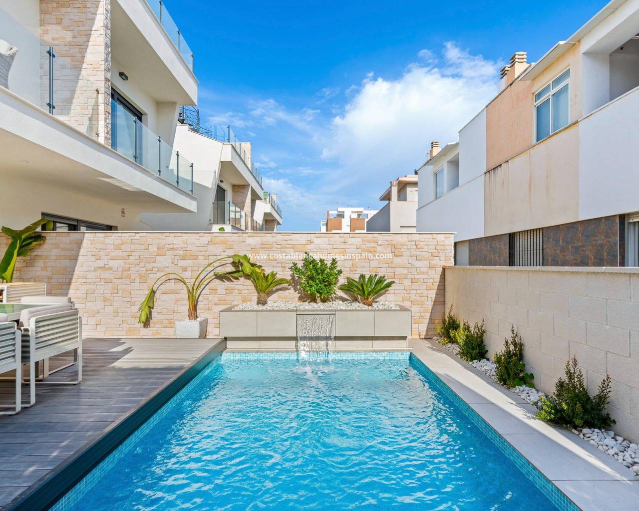 NEW BUILD SEMI-DETACHED VILLAS IN GUARDAMAR DEL SEGURA New Build residential of 8 semi-detached villas in Guardamar del Segura. Semi-detached villas with 4 bedrooms and 4 bathrooms build over 3 floors, open plan kitchen with dinning/lounge area and the large gardens and parking space on the plot. Guardamar del Segura is a town located on the Costa Blanca South. With its 11 kilometers of natural beach and its large pine forest. Guardamar is a quiet town to live in, it has all the services throughout the year such as restaurants, bars, shops, banks, places for leisure, etc. Every Wednesday, in the central streets of the town, a market is organized where many people go to buy products such as food, clothing, furniture, animals, etc. It is a great claim and inhabitants of the surrounding town come to Guardamar every Wednesday to visit the market. Guardamar del Segura has a large port with activities throughout the year, it has a large sports centre with paddle tennis, tennis, soccer and a large heated swimming pool that works all year round. It also has a library where there is free wifi and computers. Guardamar del Segura is only 20km away from the Alicante - Elche (El Altet) airport, where there are many flights every day with connections to the main European cities, due to the demand for tourists on the Costa Blanca.