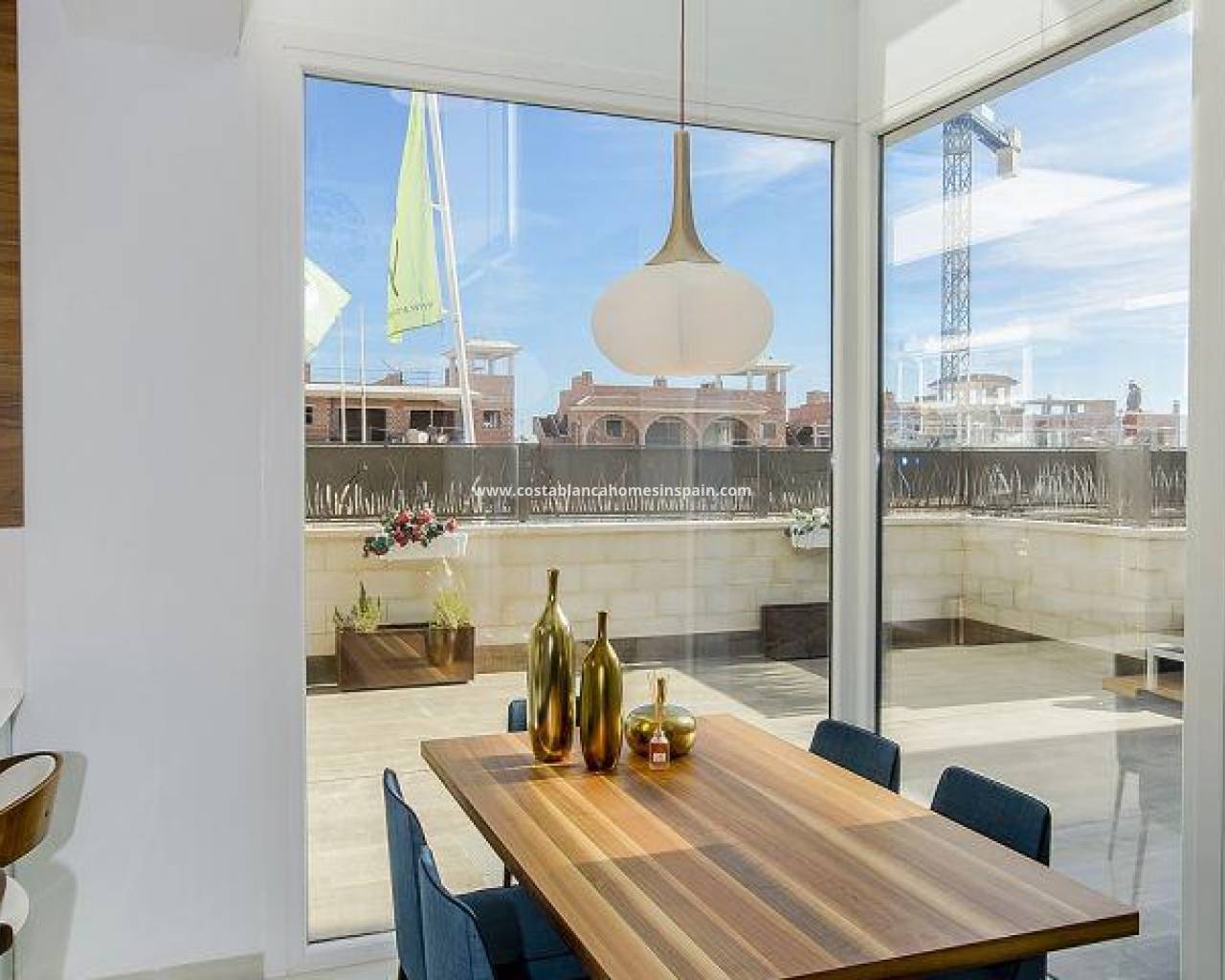 DESIGN VILLA WITH ALL THE LUXURIES Detached villa with 3 bedrooms, 3 bathrooms, with a SOUTH orientation. It has a 12 m2 porch / pergola on the ground floor and a 45 m2 solarium on the roof. It has a terrace, private garden and access door to the car. It is designed with high quality materials using the most careful technology and providing the greatest comfort 6.5x3.3 swimming pool with colored lights, designer tile, brick staircase, 1.20 waterfall and bench to sit under the waterfall. This residence is located in one of the most beautiful and quiet areas between Ciudad Quesada and Pueblo Bravo, near the Natural Park of Las Lagunas de La Mata and Torrevieja and very close to the beaches of Guardamar and the La Marquesa golf course.