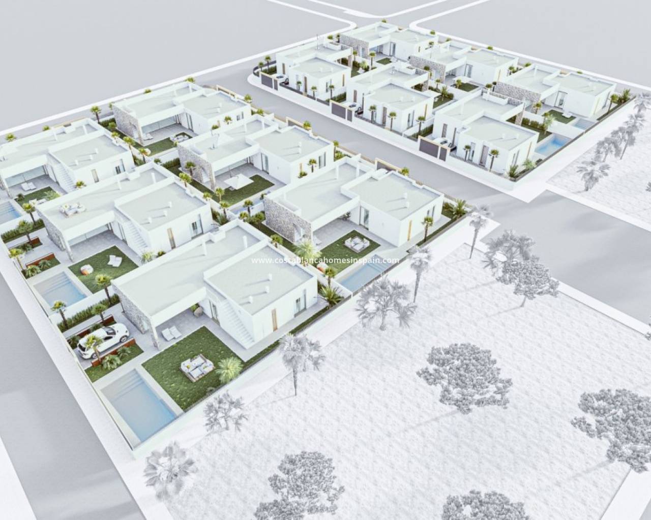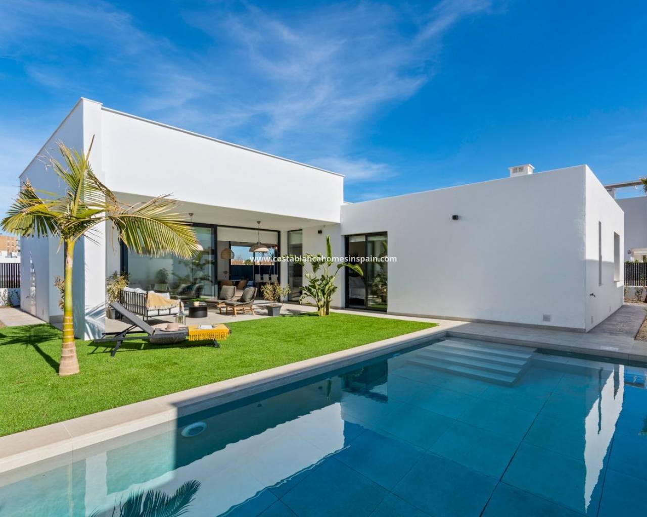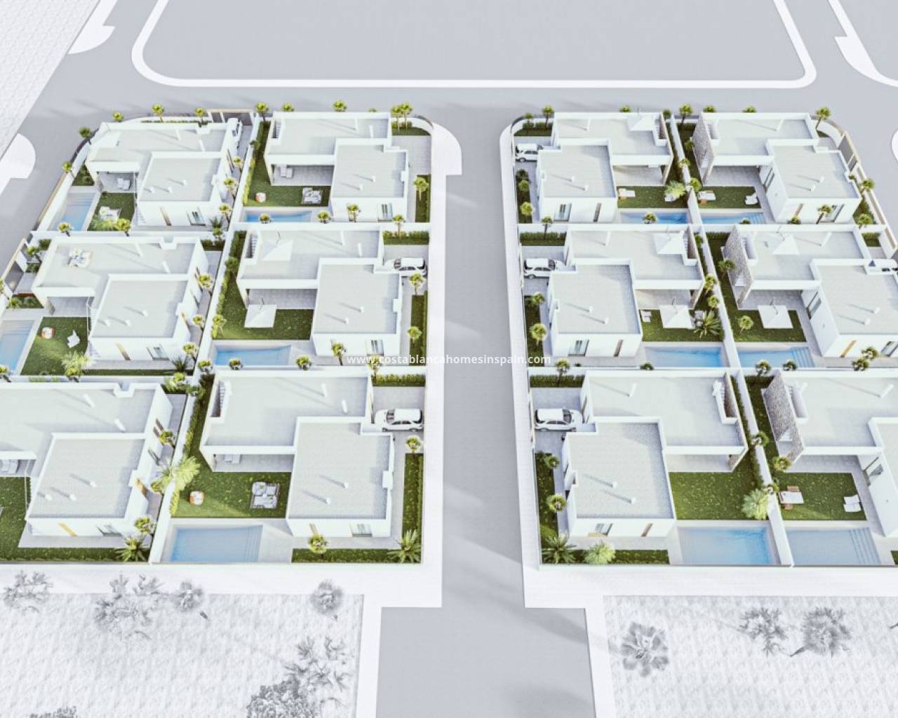 NEW BUILD VILLAS IN MAR DE CRISTAL New Build one level villa with 3 bedrooms, 2 bathrooms and private solarium at 500 meters from the Mar De Cristal beaches. Villas has modern open plan kitchen with the living room, where high sliding windows has access to the garden with private swimming pool and parking space. Mar De Cristal is a coastal town in the middle of beautiful nature and nature parks of which you find photo’s added. This is one of the most beautiful places in Spain and the whole world. In Mar De Cristal you will find some nice restaurants and a supermarket. The nice restaurants of Los Belones are only 2 km’s away, The 36 km beaches of La Manga are a 5 minutes drive. Magical Cabo De Palos and Portman is only a 5 minutes drive. The big shopping centre of Cartagena is less than a 10 minutes drive. Murcia Corvera airport is 30 minutes away, Alicante airport 55 minutes.