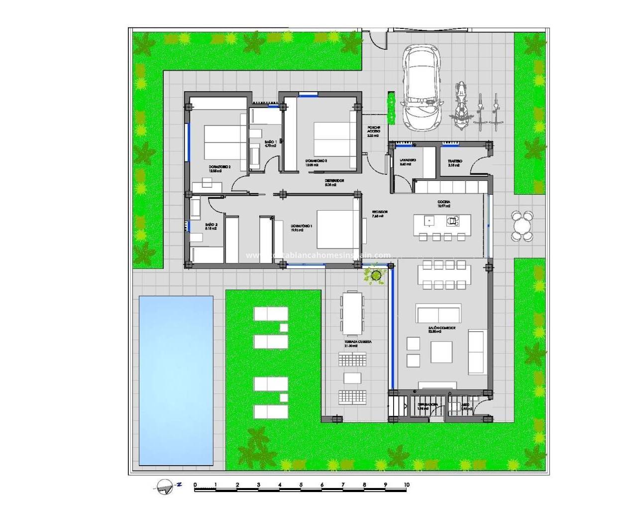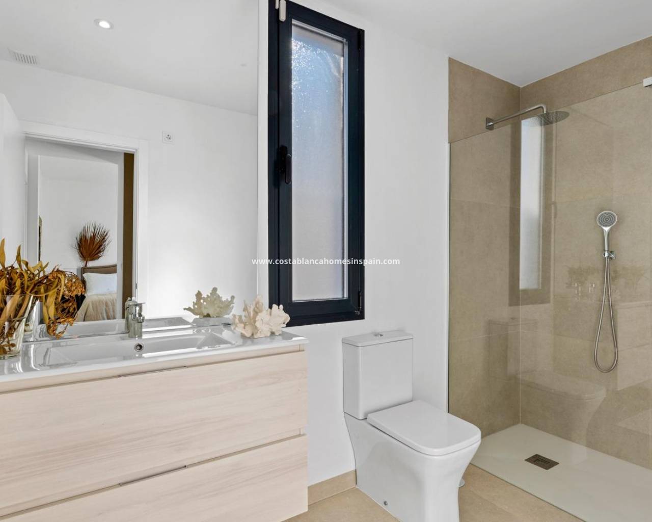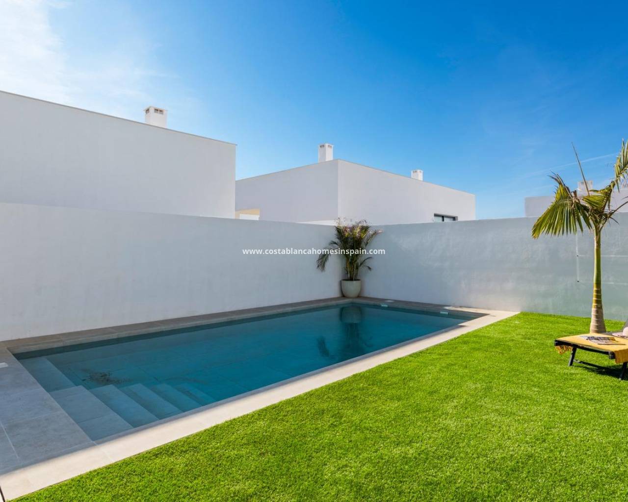 NEW BUILD VILLAS IN MAR DE CRISTAL New Build one level villa with 3 bedrooms, 2 bathrooms and private solarium at 500 meters from the Mar De Cristal beaches. Villas has modern open plan kitchen with the living room, where high sliding windows has access to the garden with private swimming pool and parking space. Mar De Cristal is a coastal town in the middle of beautiful nature and nature parks of which you find photo’s added. This is one of the most beautiful places in Spain and the whole world. In Mar De Cristal you will find some nice restaurants and a supermarket. The nice restaurants of Los Belones are only 2 km’s away, The 36 km beaches of La Manga are a 5 minutes drive. Magical Cabo De Palos and Portman is only a 5 minutes drive. The big shopping centre of Cartagena is less than a 10 minutes drive. Murcia Corvera airport is 30 minutes away, Alicante airport 55 minutes.