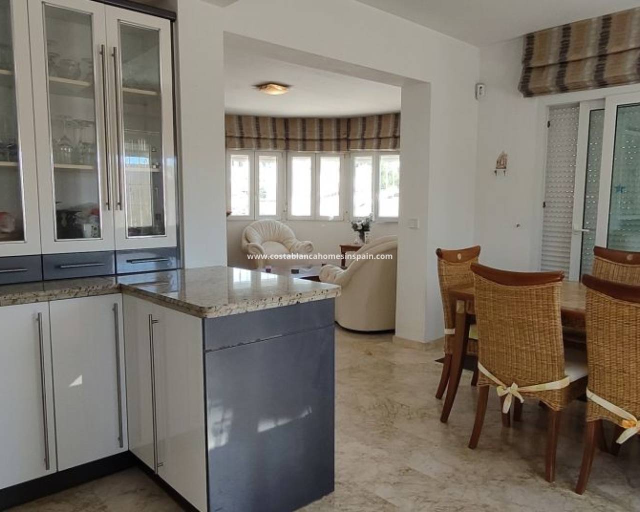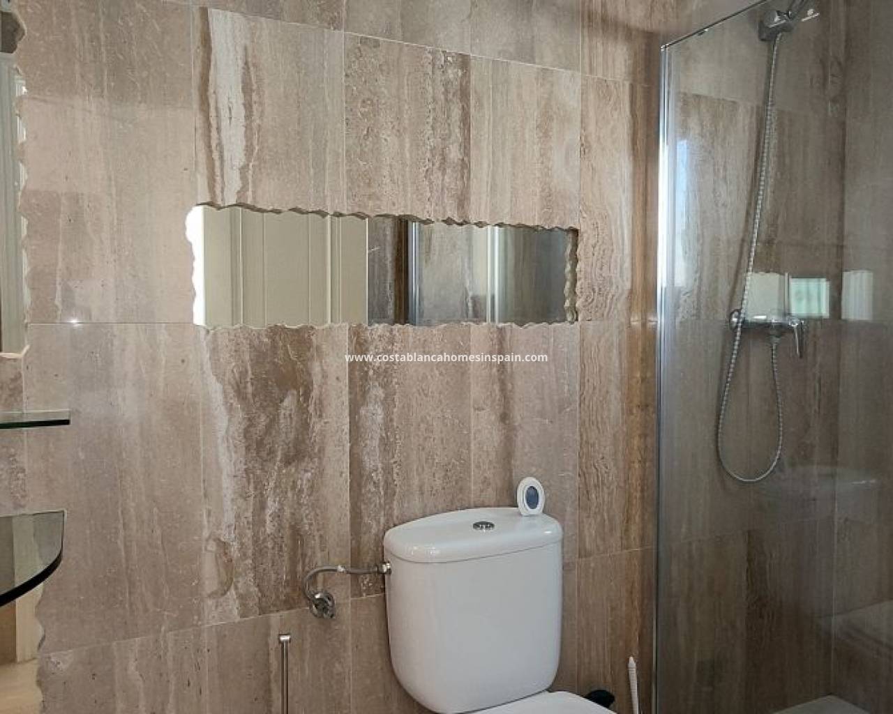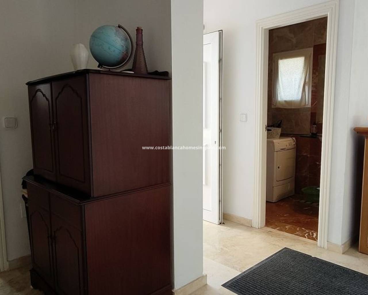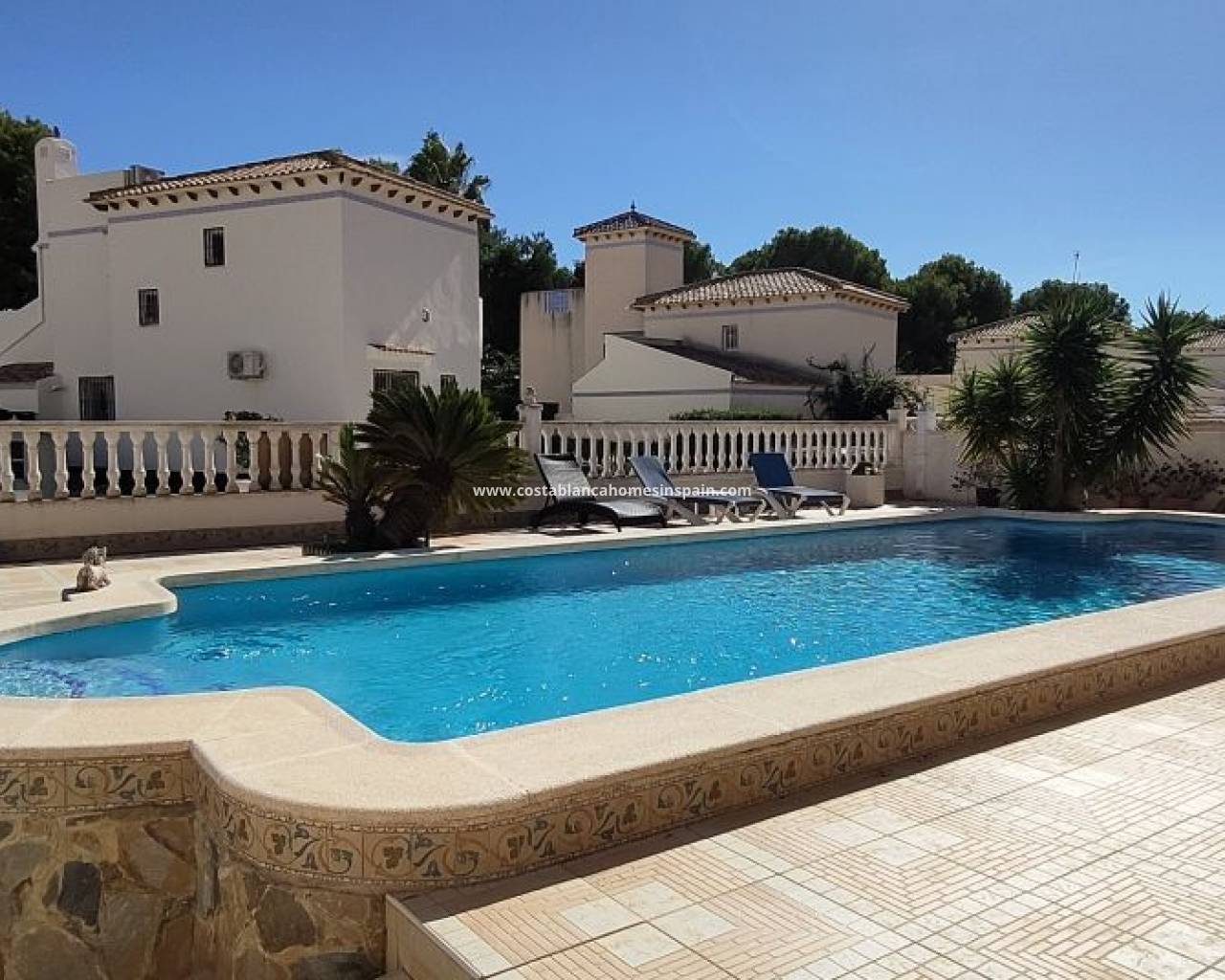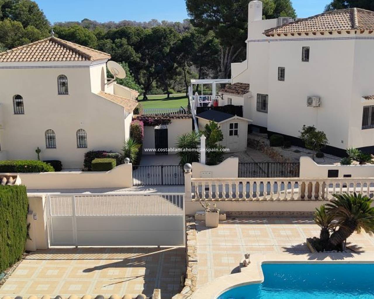 Fantastic south facing detached villa, 2nd Line to Las Ramblas Golf! Unbeatable Value! Discover your Mediterranean dream home with this stunning and charming villa, perfectly located on the exclusive Las Ramblas Golf Complex. Designed for comfort, style and sunny living, this south facing property offers everything you could wish for in your luxury home on the Costa Blanca. Built on an impressive 500m2 plot, the villa features a large and bright living and dining area with open plan kitchen, two bedrooms, a family bathroom and an additional guest toilet on the main floor. The master bedroom with en suite bathroom is located upstairs and offers direct access to a stunning roof terrace with panoramic views of the golf course - the perfect place to relax and enjoy the scenery. Step outside and enjoy the beautifully landscaped garden with a large private pool, BBQ area and plenty of space for sunbathing and entertaining. The villa is located on a quiet, private road with no through traffic, yet close to everything, offering peace and privacy. Just a 3-minute drive will take you to the lively commercial centre of La Fuente, which offers over 50 bars and restaurants, banks, pharmacies and a vibrant nightlife. Two large supermarkets (Mercadona and Aldi) are just a 10-minute walk away and the sandy beaches of Orihuela Costa are just a 10-minute drive from your doorstep. Given its size, location and unbeatable price, it truly is a bargain purchase - this villa is a rare opportunity not to be missed!