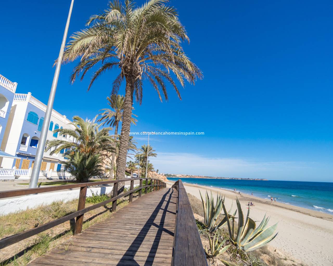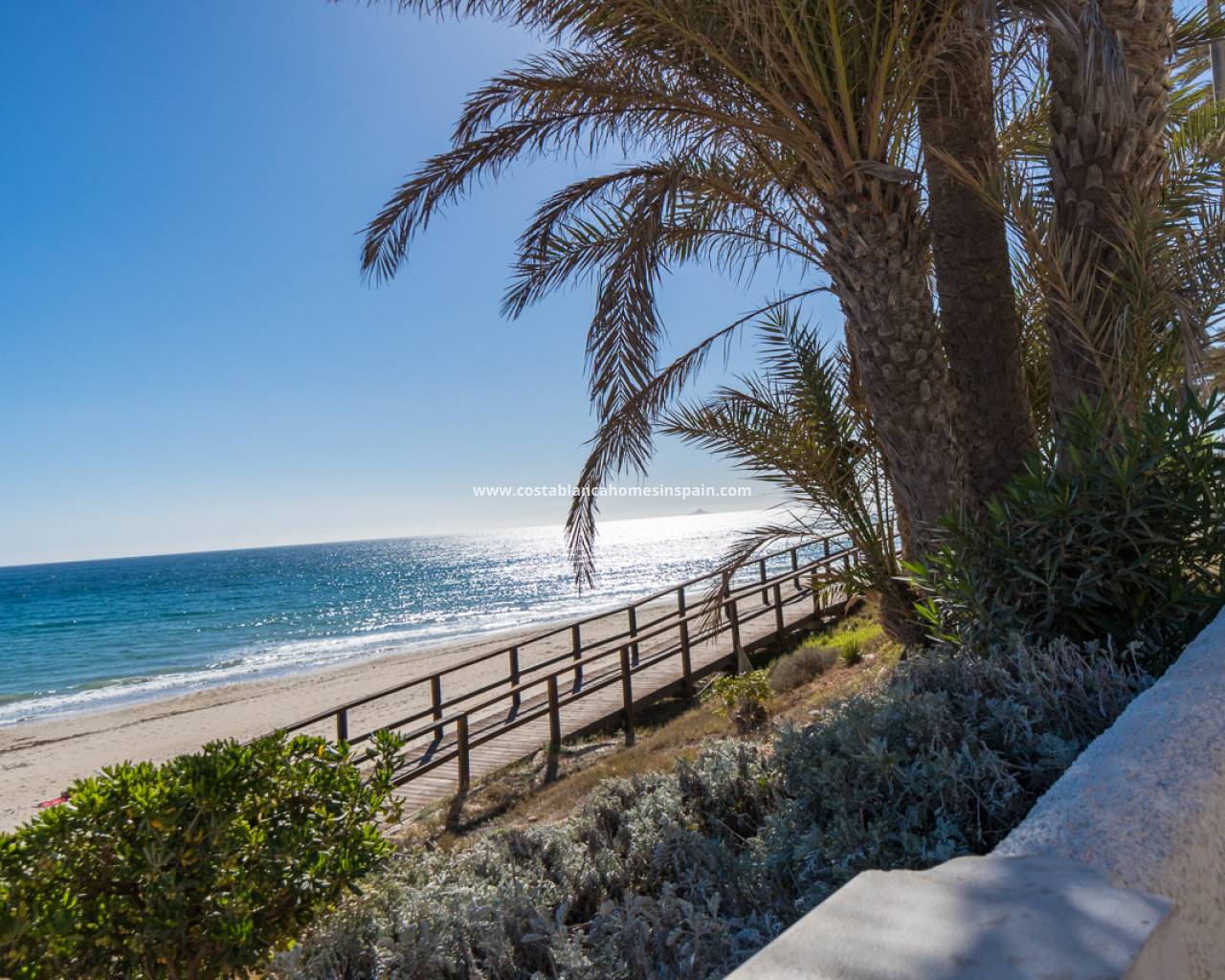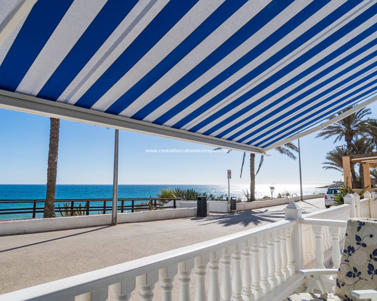 Absolutely outstanding location for this ground floor apartment front line to the beautiful Mil Palmeras beach and boasting panoramic sea views. The apartment offers 2 spacious bedrooms, family bathroom with large shower, open plan living/dining room with fully fitted galley kitchen and handy storage/utility area. The property also boast a private garage. Outside space offers a charming sun terrace. The apartment boasts a prestigious location by the beach for those looking for a seaside location, a few steps to the boardwalk and one of the best Blue Flag beaches on the Orihuela Costa. Local amenities are on hand including local cafe-bars and restaurants. A perfect getaway by the sea. Contact us today for your viewing