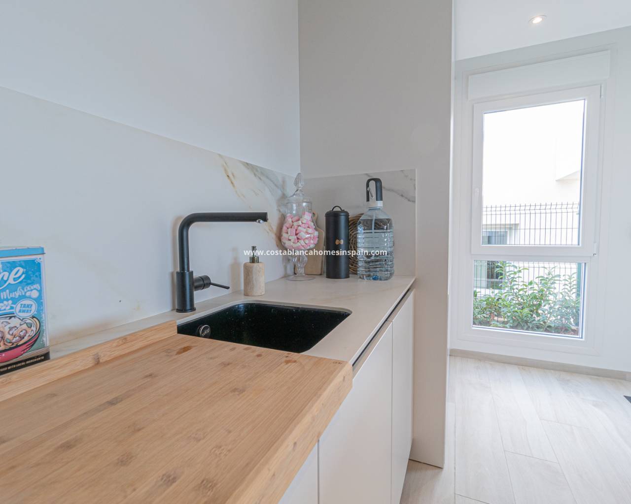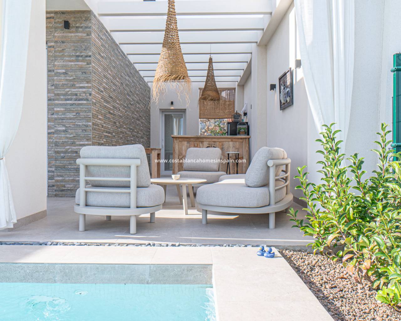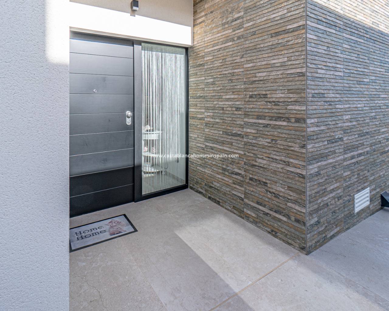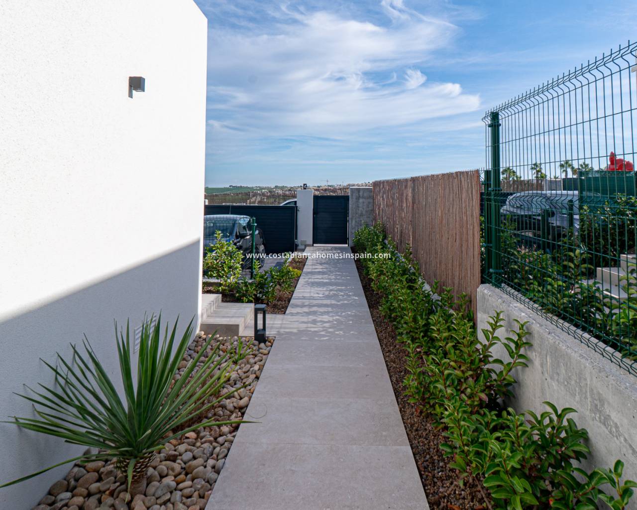 We are pleased to present this stunning luxury villa with panoramic views due to it´s elevated position at the 5 star La Finca Golf course. This impressive modern home is a perfect example of a resale of a new build without the wait and packed with luxury extras. The home offers a vast living/dining space, typically not seen in such homes, and offers the perfect area for leisure and entertainment, there is still ample space for a formal dining area or you can sit at the large island leading to the high end kitchen, which features floor to ceiling integrated cabinetry, ample work top space and top of the range white goods, plus leading out to a utility area and to the side patio terrace. The home offers 3 bedrooms, the master suite comprises a spacious double bedroom with patio doors to the garden and sun terrace, large walk in dressing room, with ample storage and floor to ceiling mirror, plus luxury shower room with his and hers sinks. The further 2 guest bedrooms both feature integrated wardrobes with ample storage space and share a further modern shower room. The whole home inside presents like a show room and has been made unique by the owners eye for detail and shows clearly their passion for interior design. Each piece and all decor has been lovingly chosen to integrate sympathetically with the wood and stone design, yet brings a touch of class to each room. The villa is set on a low maintenance plot of over 400m2 with sun terrace to the front offering some shade from the Spanish sun and is the perfect space for al fresco dining, likewise a sunny corner along with an summer kitchen/bar area offers the ideal spot for entertaining. The villa of course offers private swimming pool to cool off in the height of summer and the remainder of the plot is low maintenance with high quality tiles, gravel and artificial grass, a easy to access driveway offers secure gated parking, although there is ample quiet street parking outside the villa. Boasting stunning unobstructed mountain and country side views due to it´s elevated position this home offers everything a discerning buyer could wish for. This stunning villa will be sold part furnished although inventory can be discussed dependent on offers and is sold with many extras including integrated white goods, air conditioning, remote controlled blinds and gates, plus much more. Located a mere 200m to the La Finca Golf hotel Spa and club house , ideal for golf lovers for those extended holidays or ideal for permanent living as under 3km to both the traditional village of Algorfa which offers Spanish charm,local restaurants, bars, local shops and the traditional village square and the commercial area at La Finca also noted for some quality restaurants, cocktail bars and much more. Around 17km to the beaches of Guardmar del Segura , La Mata and Torrevieja, meaning you are never far from the coast. This home must be seen to be appreciated and is even more stunning in real life. Contact us today for your viewing