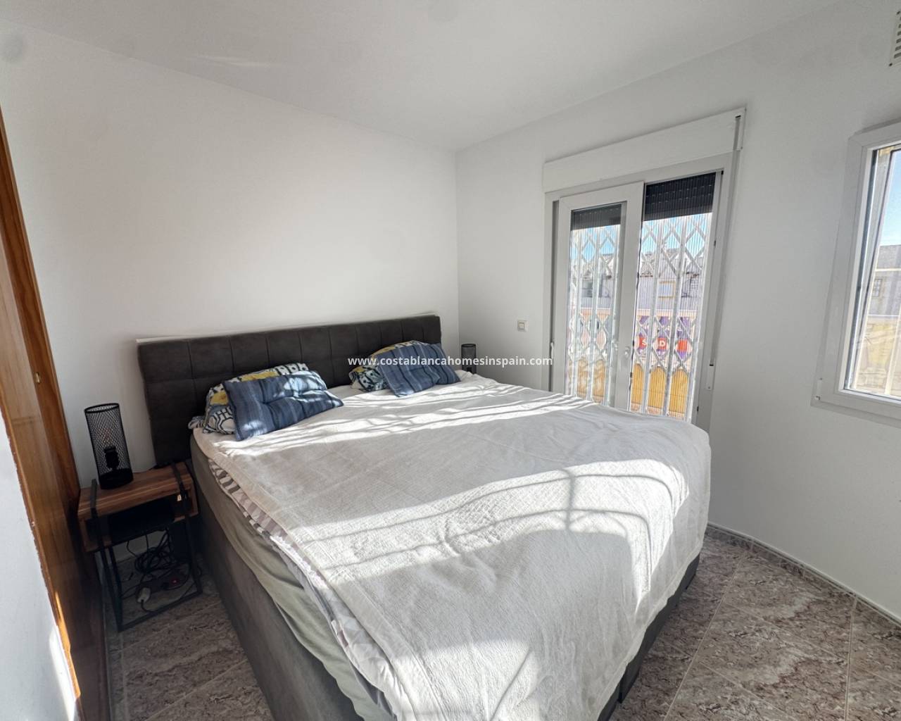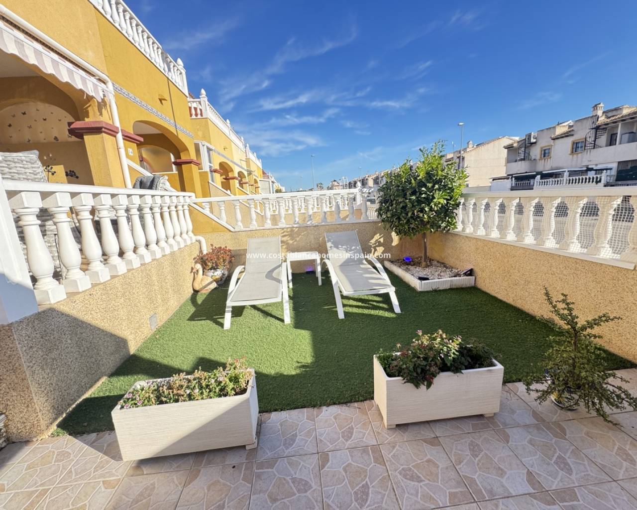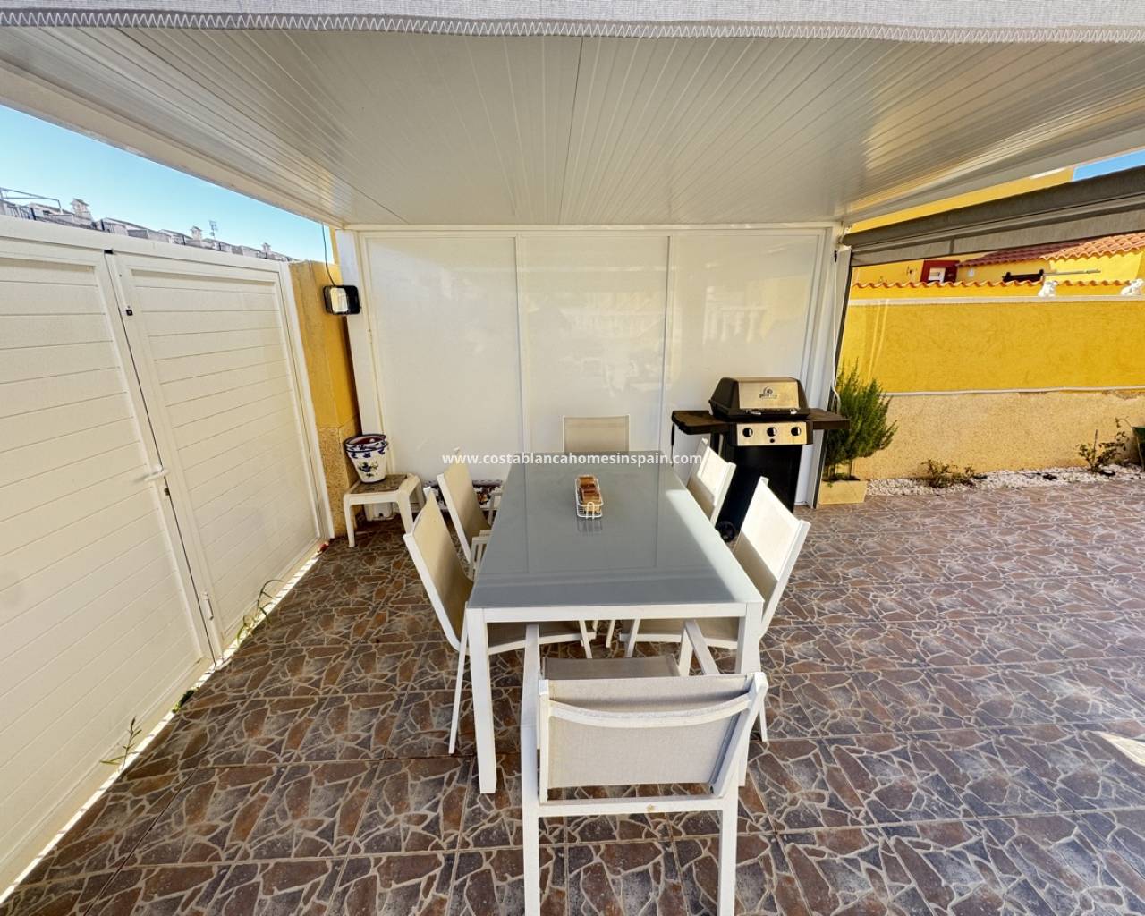 This charming semi-detached 2-bedroom, 2-bathroom house is powered by solar energy, perfect for sustainable living. Enjoy the spacious L-shaped garden with front and rear terraces, ideal for alfresco dining and relaxation. Key Features: - 2 bedrooms with a modern bathroom - Solar power for eco-friendly living - Large L-shaped garden with terraces - Located on the outskirts of a gated community with access to 2 communal pools - Prime spot between La Zenia and Cabo Roig - convenience and tranquility in one. A perfect blend of comfort, sustainability, and location. Get in touch for more details.