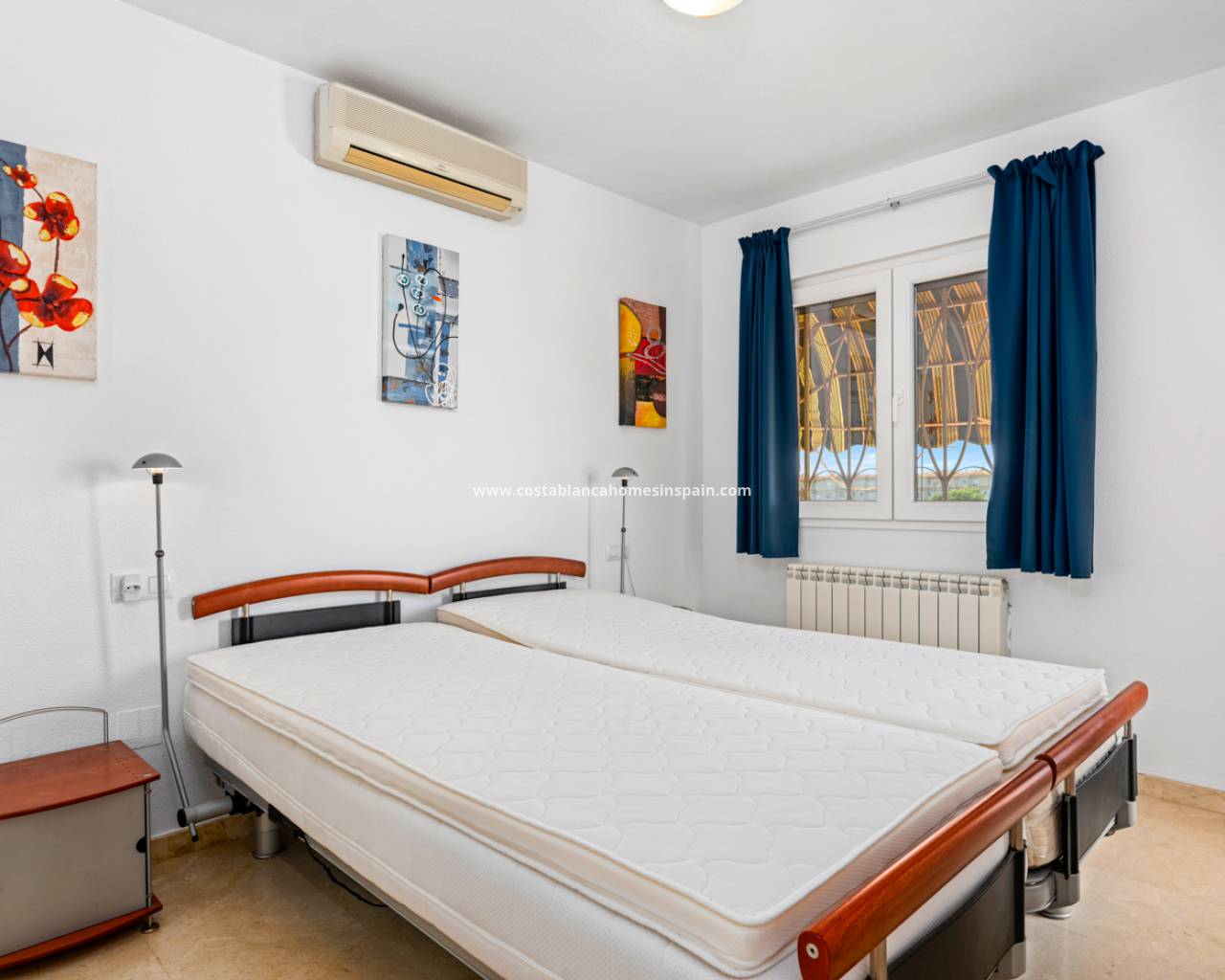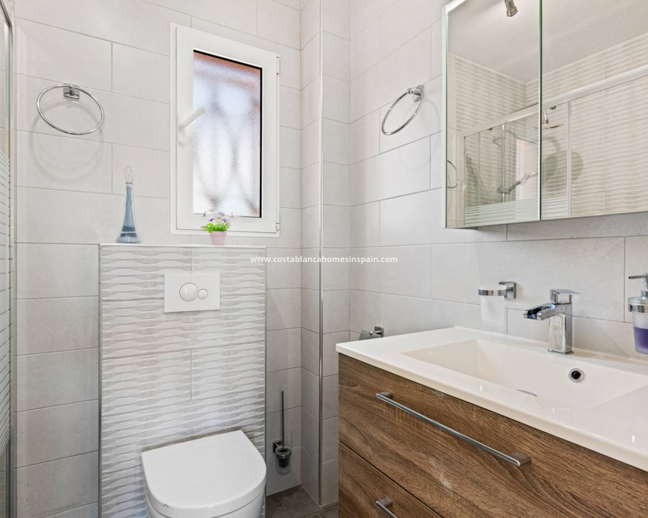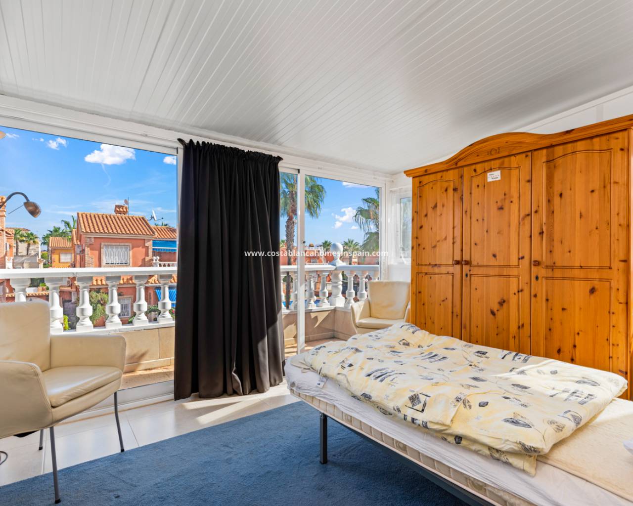 Playa Flamenca, Residencial Numancia, independent villa A house on two floors of 93 m2, the house has 3 bedrooms (one on the ground floor) and 2 bathrooms, independent kitchen with closed gallery, living room with fireplace, 2 terraces, driveway and a 20 m2 solarium. the house is sold fully furnished and equipped with air conditioning, a storage room, and a barbecue, the urbanization has a communal pool.