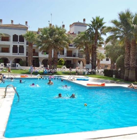 Terraced bungalow with front and back garden, private solarium just walking distance to La Fuente Center and Mercadona Supermarket. Entering the private garden in the front we have the access to the property. Light and airy living room and fully equipped new kitchen with floor and wall units, white goods are all new. The property has a new floor, a brand new kitchen, bathroom, windows, and wardrobes. There is a storage from the kitchen that gives place to the washing machine as well. Internal door dividing the living room from the 2 bedrooms and bathroom. The master bedroom has beautiful new furniture as well as the 2nd bedroom and built in wardrobes. The Master bedroom has access to the back terrace. The bathroom has a fresh and new style walk-in shower with a tempered glass shower screen, a new vanity unit with a modern mirror, and a toilet. From the front garden stairs leading up to the solarium.