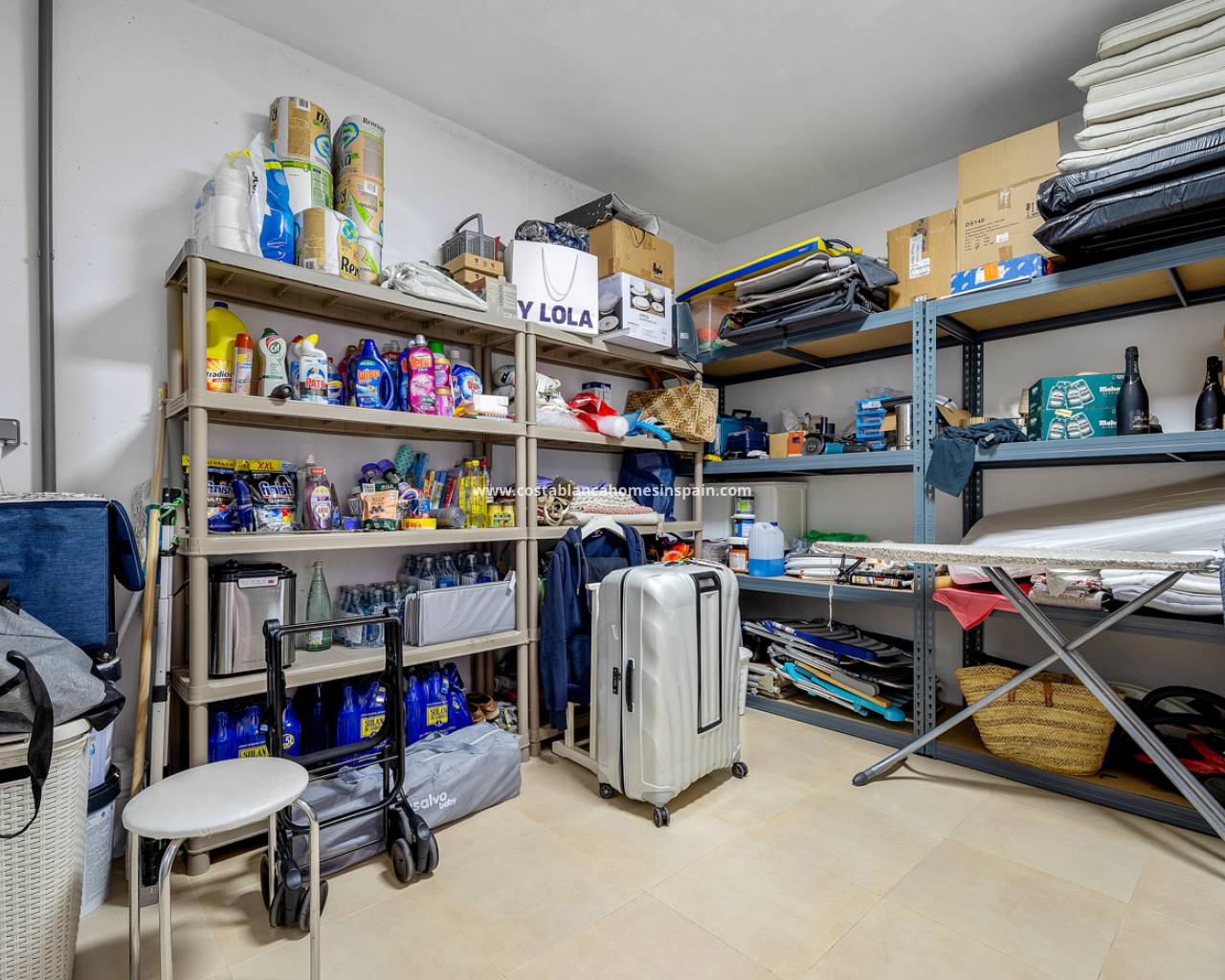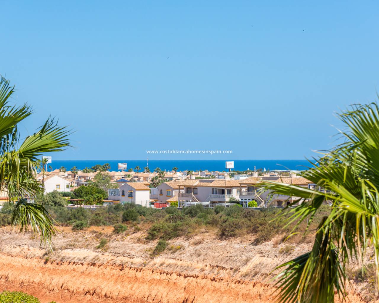 This property has a large south-facing terrace with open sea views. A bright and spacious living room and dining room with large sliding doors that lead out to a terrace with an awning. Kitchen with white goods and a laundry room with access to the common area at the back. There is a large bathroom with a shower cubicle and 1 bedroom with a double bed on the main floor. Marble stairs lead down to the lower floor, which can be used as a cellar/storage room and has access to its own closed garage space. There are 2 double bedrooms and a family bathroom on the upper floor. There is a large south-facing balcony, accessed via the master bedroom and hallway, with spectacular views of the Mediterranean Sea. The urbanization is fenced and has landscaped gardens with a large communal swimming pool. 5-minute walk to an extensive selection of bars, restaurants and grocery stores. The shopping center, La Zenia Boulevard, is close by. Only a 5-minute drive to the sandy beaches of Playa Glea, which has a wide range of restaurants, a marina and walking paths along the sea.