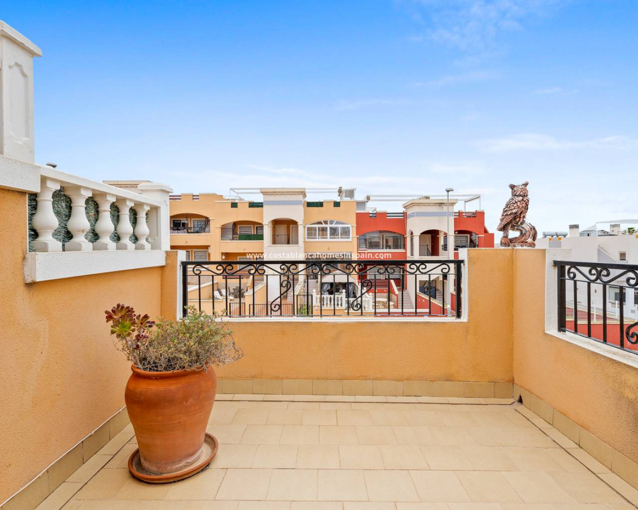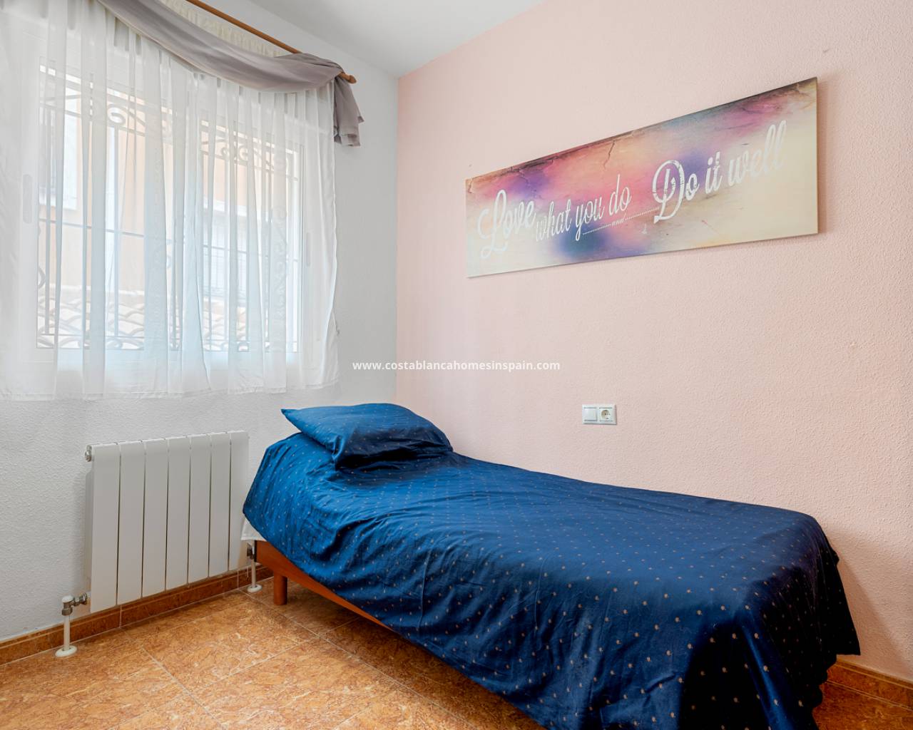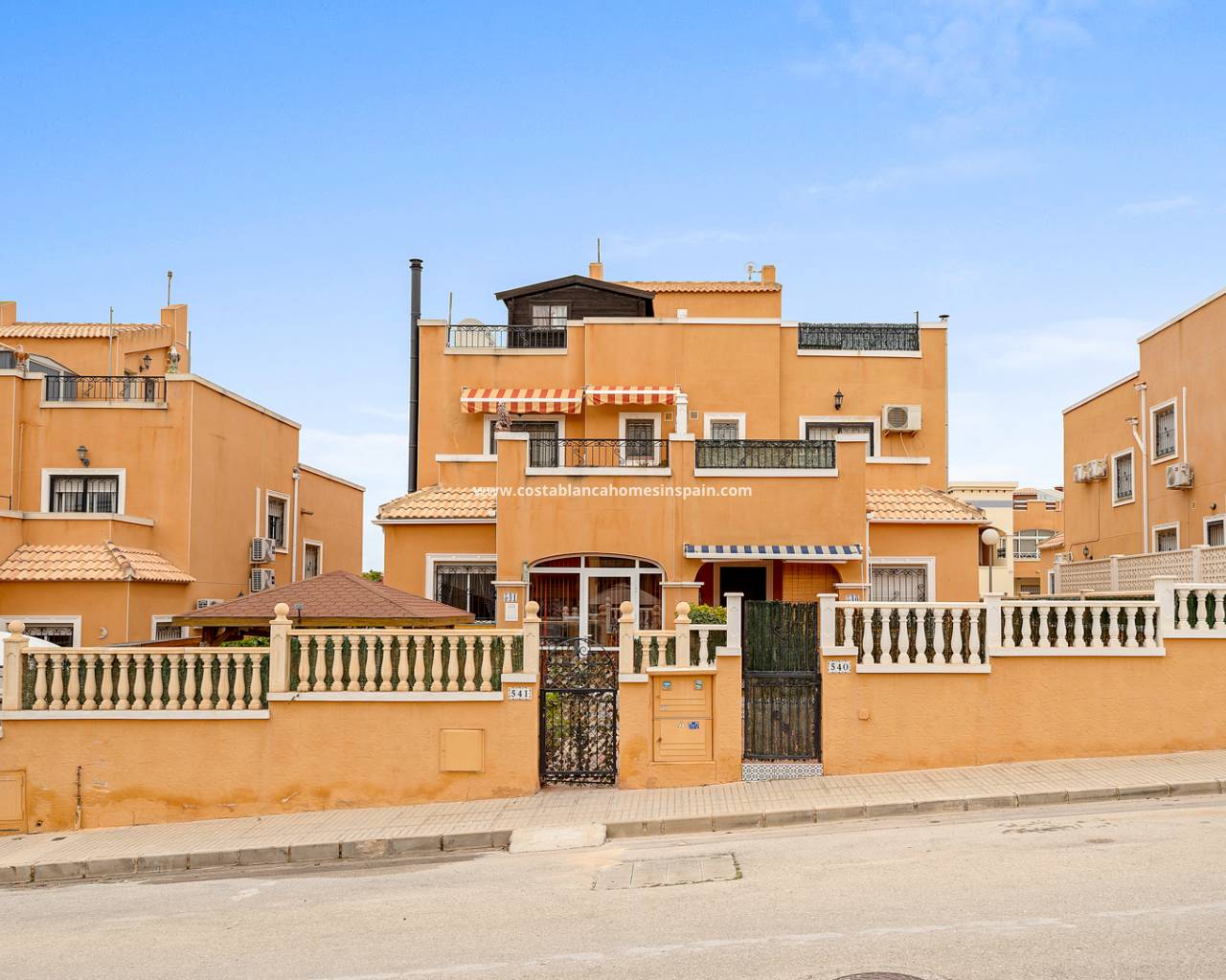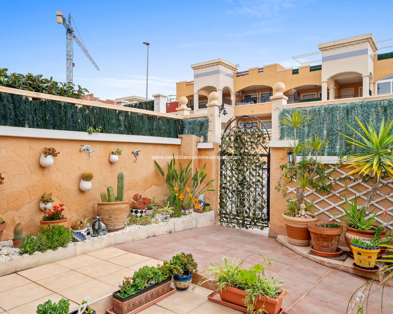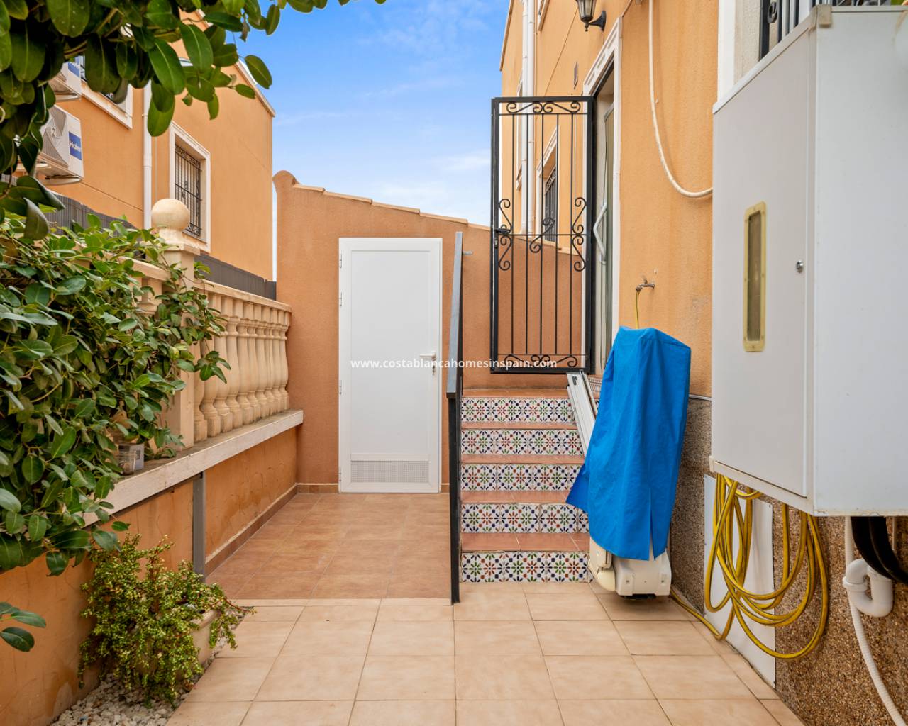 The house has 3 double bedrooms from which one has a large terrace, 2 bathrooms, a large lounge and dining area, a separate kitchen with the entrance to the garden, and a solarium with the sun all day long—this is a fantastic property. Outside you will enjoy a nice communal pool area.