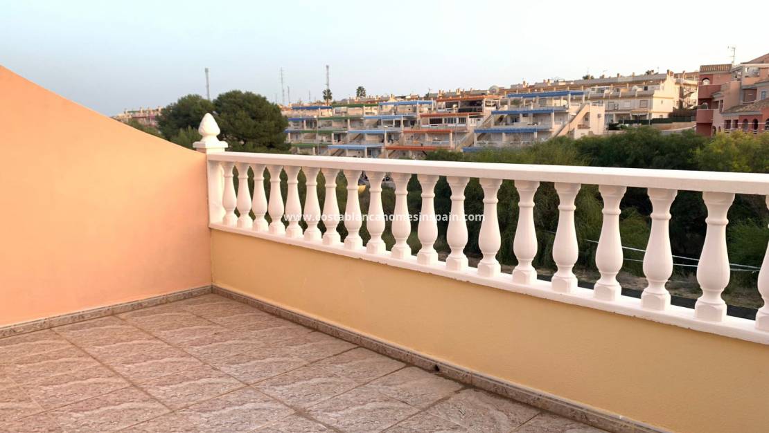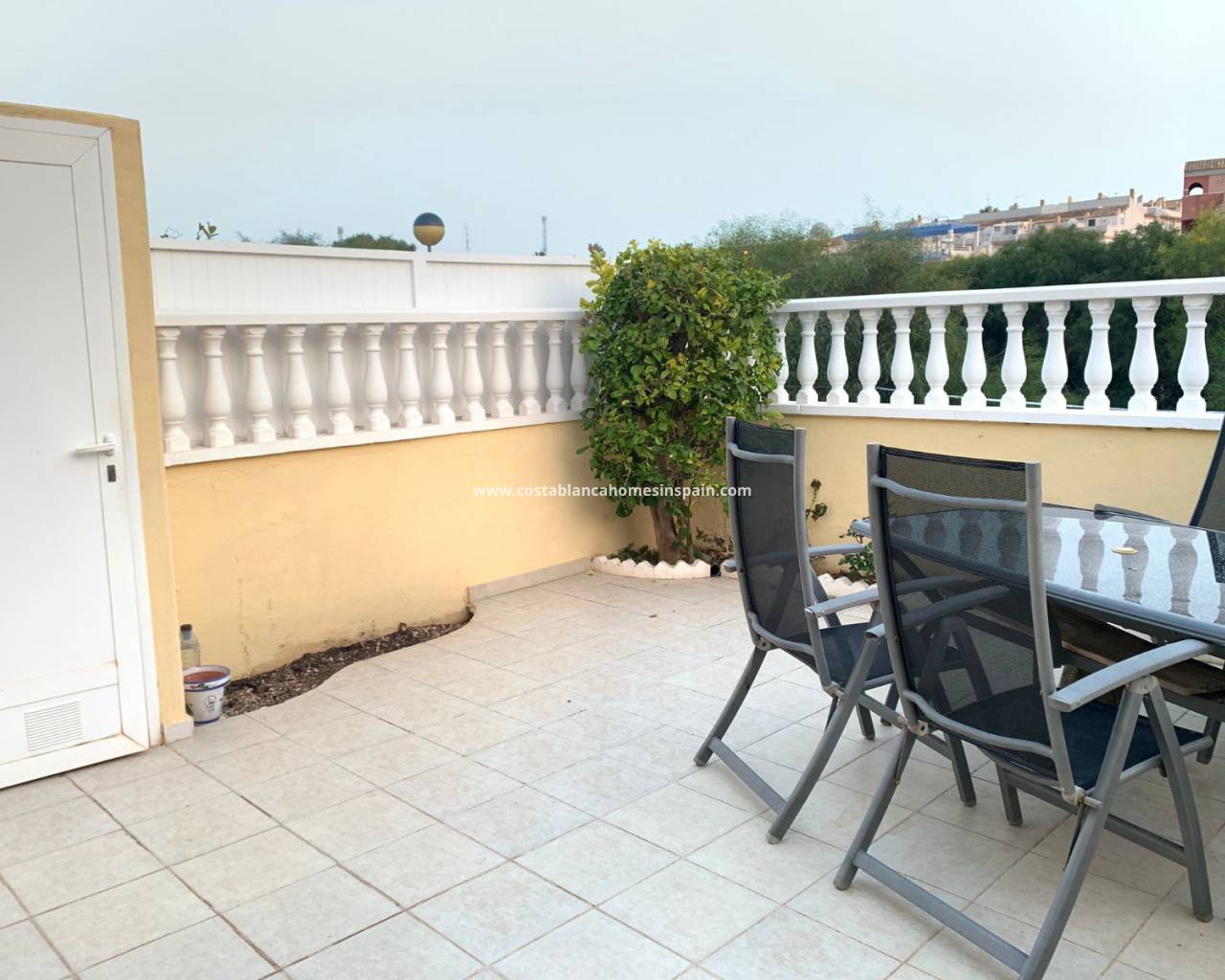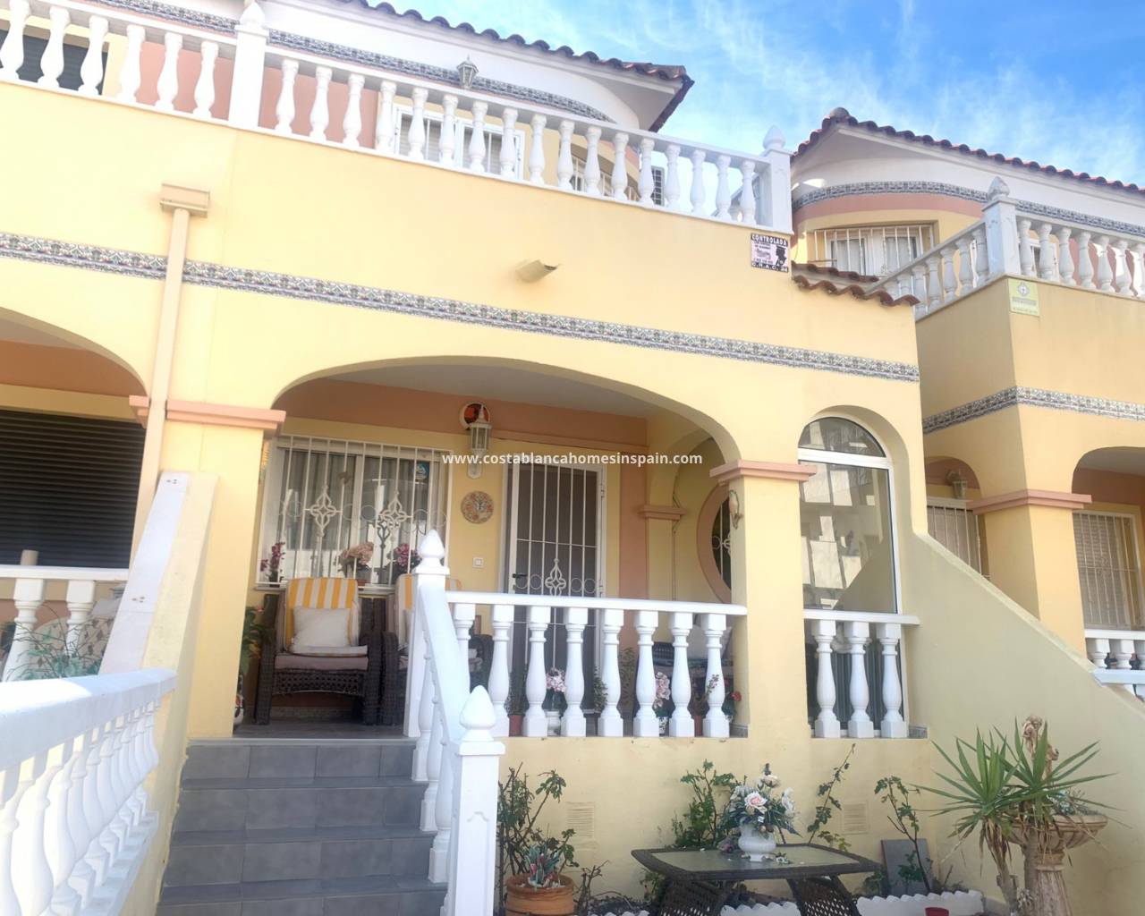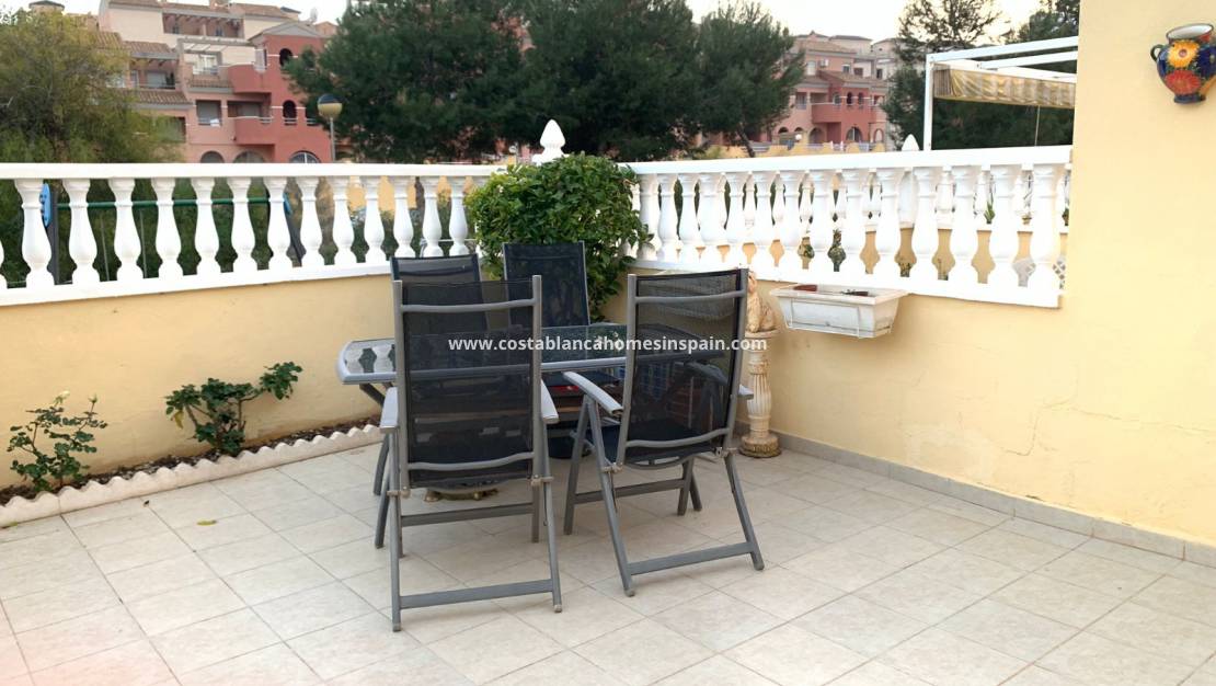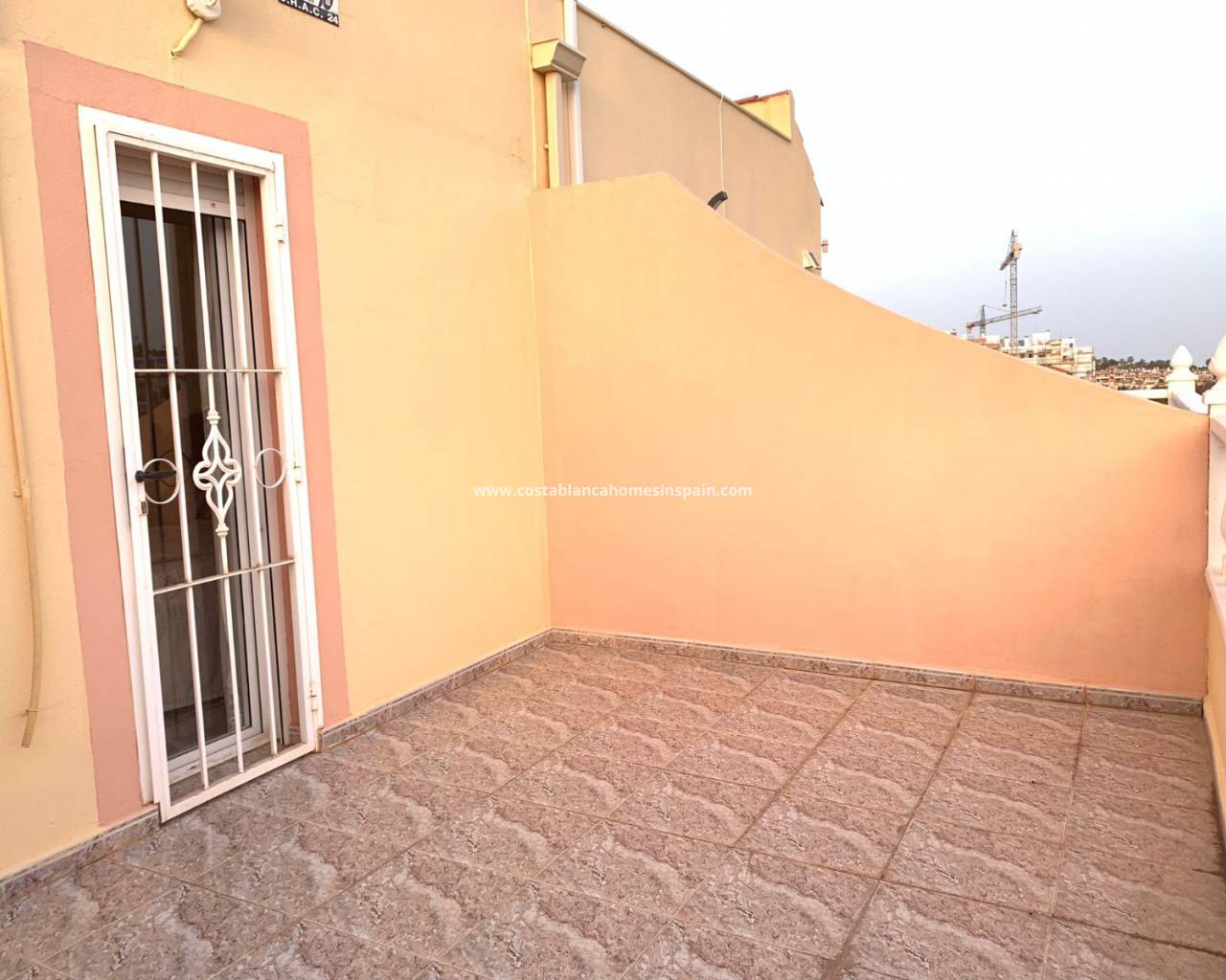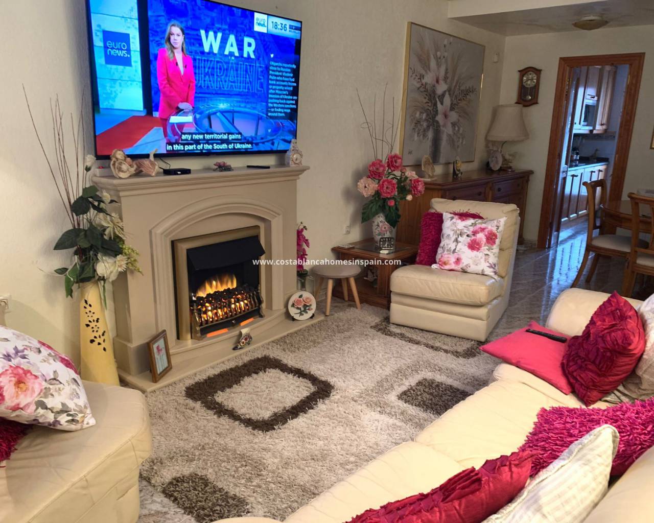 This fantastic east facing front garden and west facing back garden Townhouse is located in the area of Las Filipinas near to the La Fuente with many restaurants and bars walking distance but not affected by any noise. Starting by the ground floor, you will find a spacious off road parking and a space for a very nice sunny garden with a covered front terrace to place a table and chairs. Inside the property there is a spacious lounge, with electric fire with gorgeous fire surround and independent kitchen with a door for a way out to the garden, a double bedroom and with a separate toilet. On the first floor, there is two double bedrooms , one with a bright window, and the master bedroom one with a large terrace. Also a family bathroom with bath and shower. Comes with air condition throughout and double glazed windows.
