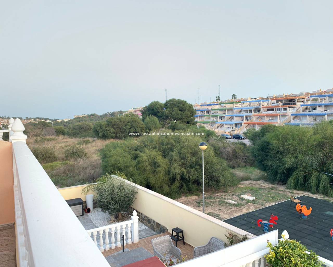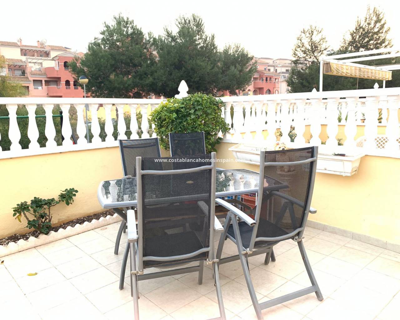 Backs on to the green area so not built up behind so not overlooked garden is nice and private, has a communal pool which belongs to only 8 houses so perfect for relaxing in the sun.