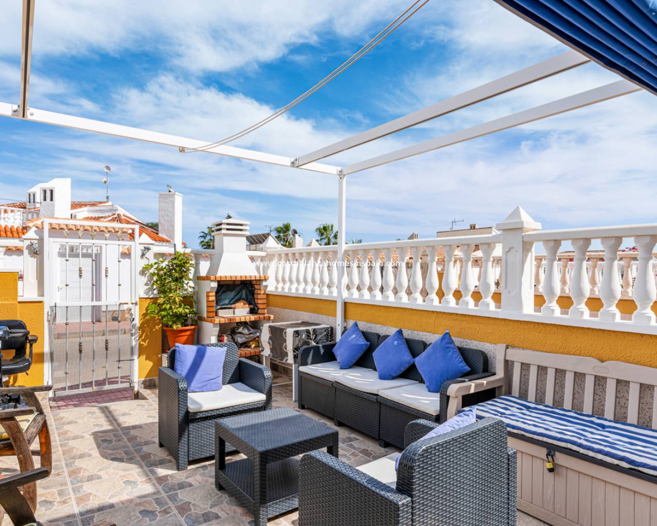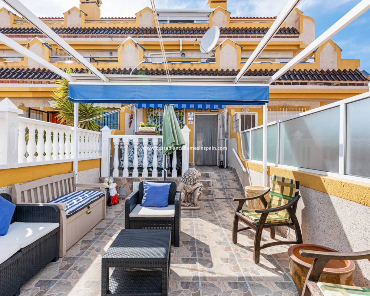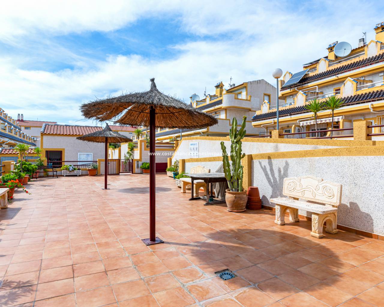 This spacious east facing 3 bedrooms, 2.5 bathroom townhouse is situated inside a gated development in Las Chismosas, Playa Flamenca. Walking distance to a variety of local restaurants, shops, and cafe bars. The fabulous La Zenia Boulevard Shopping Center and a vast variety of golf courses and white sandy beaches are just a short drive away.