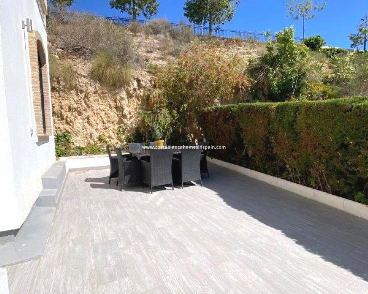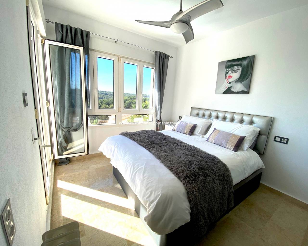 The villa is well maintained and ready to move into, it is easy to look after being fully tiled/marble throughout. The first floor entrance level has an open hallway with a Toilet/Cloakroom, leading into a bright good sized lounge/ dining room with an extra height ceiling and excellent views.