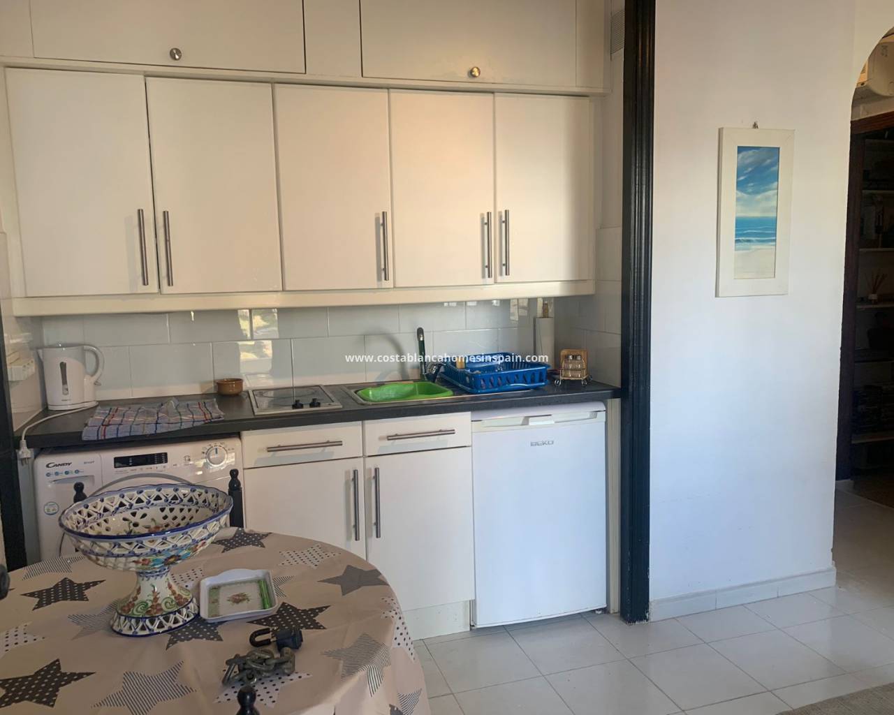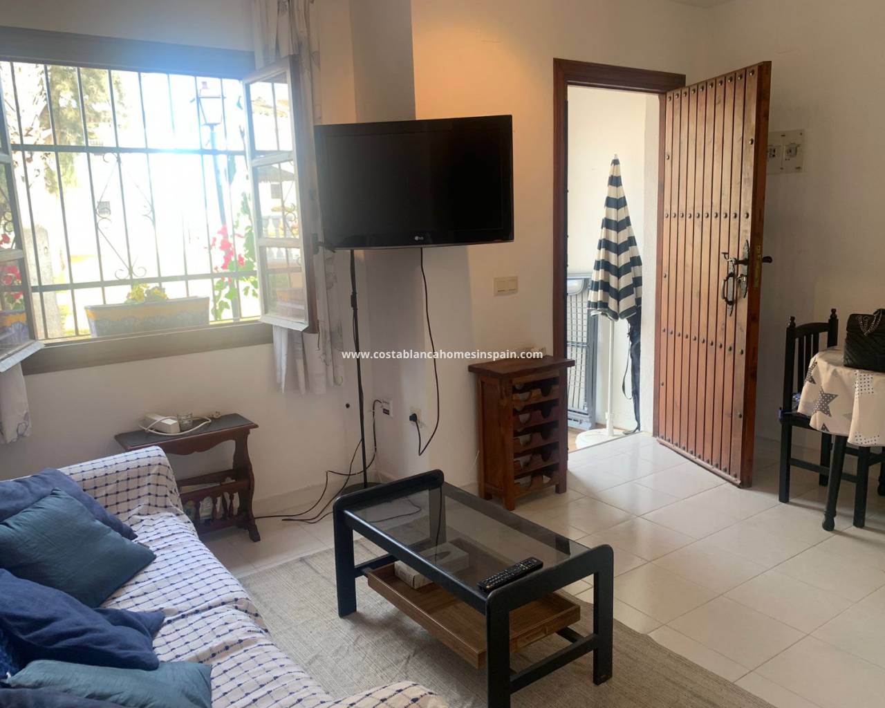 The living accommodation comprises of a lounge-dining area with an open kitchen, 1 bedroom with fitted wardrobes, and a fully fitted bathroom. Sold furnished with air-conditioning. The property is part of a community with the use of a lovely communal pool and gardens.