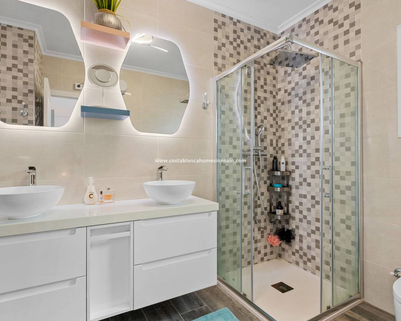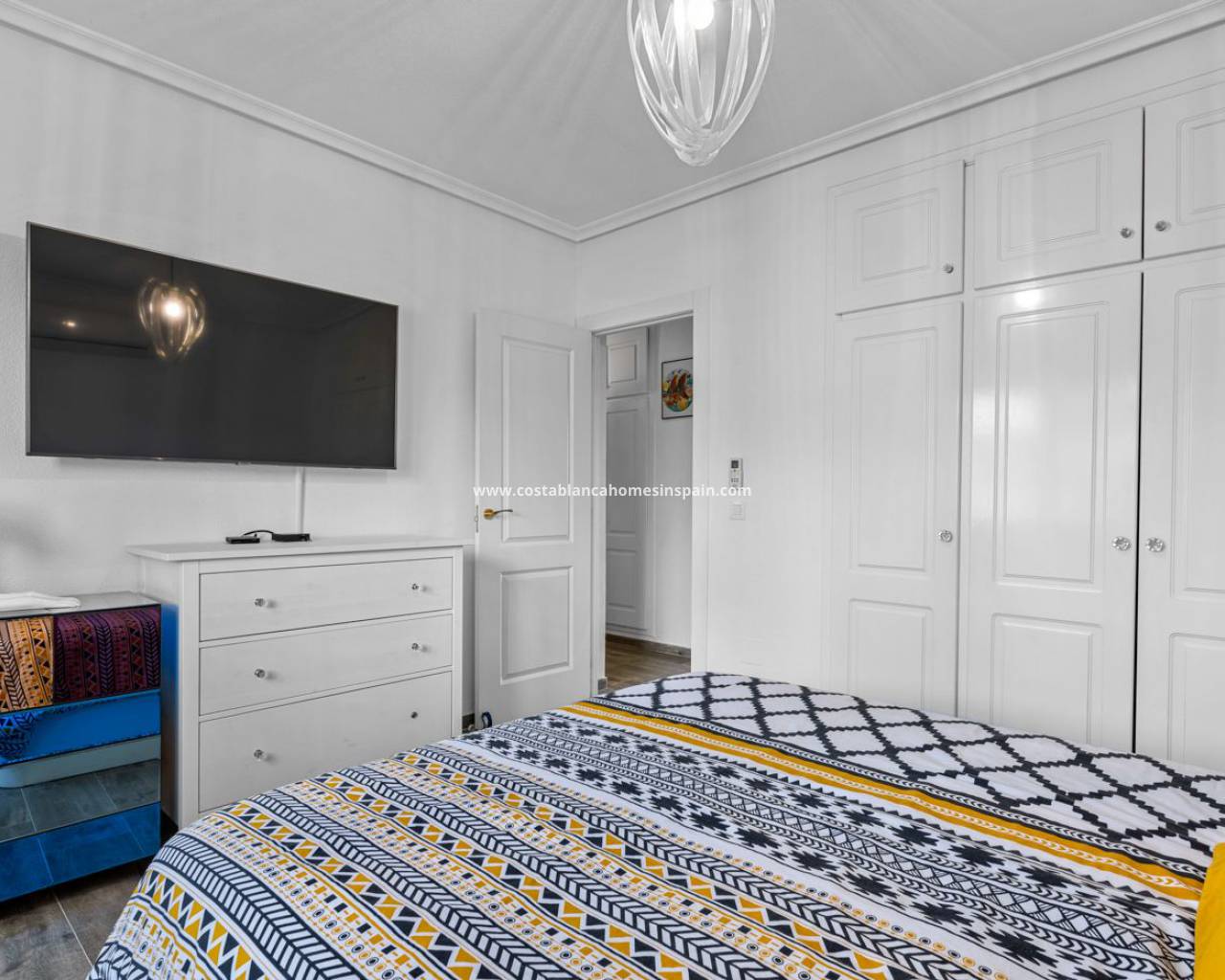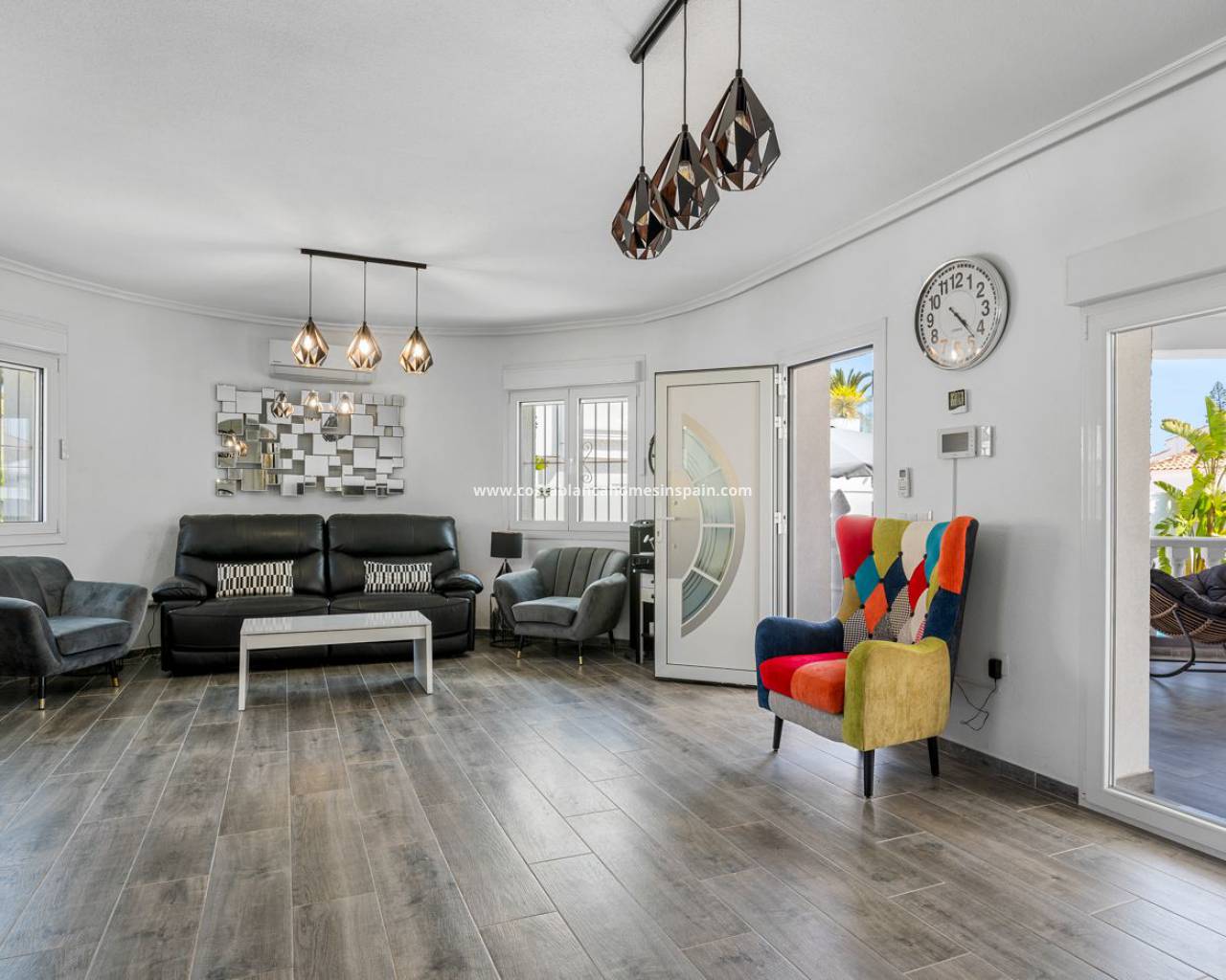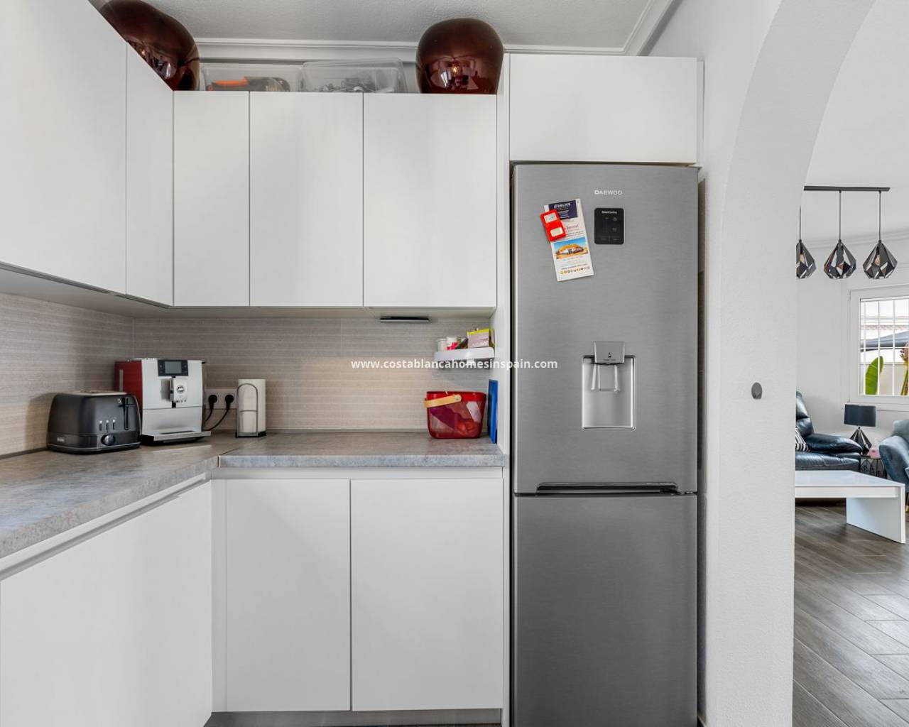 This fantastic property is located in the famous area of Playa Flamenca, just a few minutes walk from the Shopping center Zenia Boulevard and the beach, and Just a short walk to the market street. The property has high private walls with access via the electric gate for your private parking. The sunny large garden has fruit trees and natural grass, palm trees, and Estrilizias, easy to maintain but giving a romantic environment all year round. There is a large private pool (4m x 8m) on the sunny side of the property and a relaxing area with sun beds and chairs. The property's entrance is south, along with its terrace where you can enjoy al fresco evenings and afternoons, and the perfect breakfast place. Passing the front door, you will find yourself in the large lounge with a modern refurbished kitchen fully equipped with high-quality white goods. From the lounge large corridor leads you into the sleeping area, where you have 3 double bedrooms, 1 bathroom, and an ensuite bathroom in the master bedroom at the end. There utility room gives space for the modern boiler and to store every extra you might have for the kitchen and cleaning. The property has underfloor heating everywhere, divided into sections, and air conditioning in every room. The materials used in the building are of very high quality and the house all external walls have been made double thickness for extra insolation. All windows and doors changed for high quality double glased ones with electric blinds. The layout of this property is perfect for a small family to live all year round or for their holidays. The location is perfect, and the orientation invites you to stay in the sun daily.