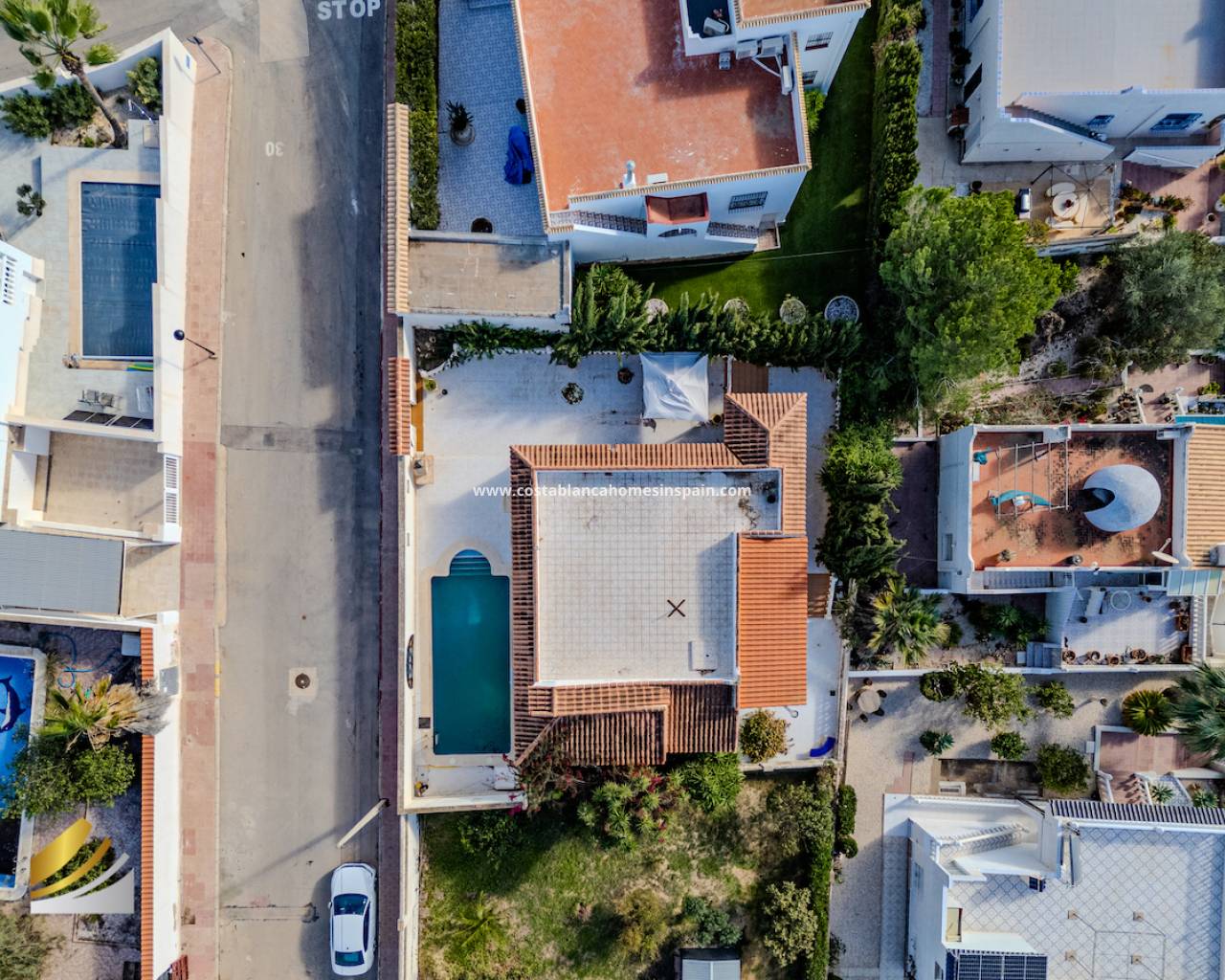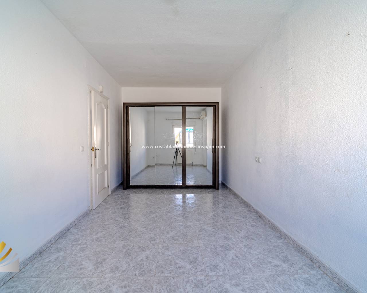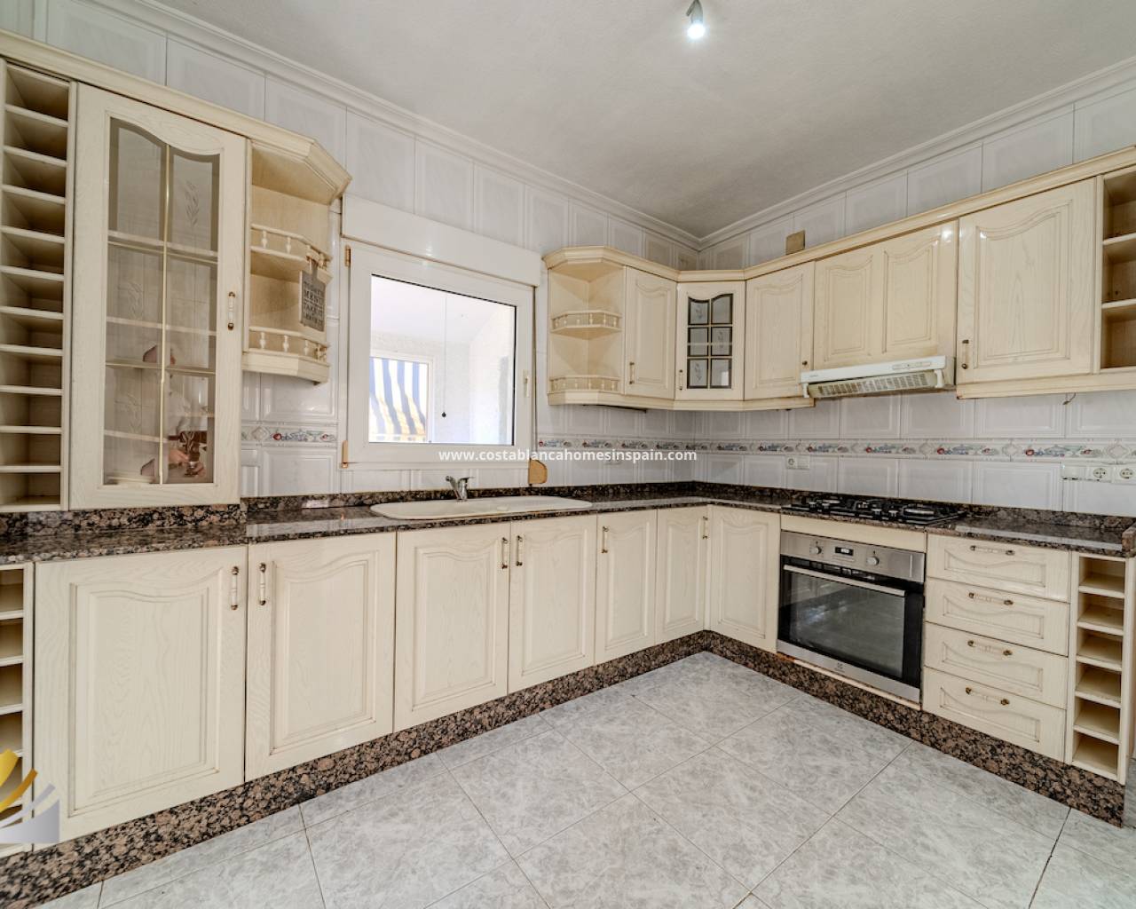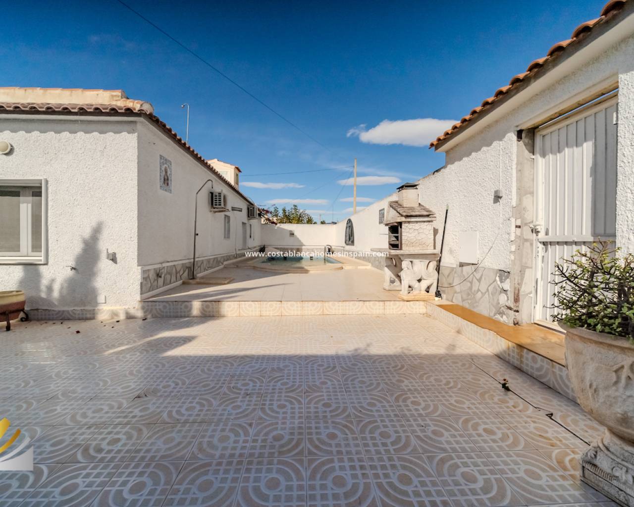 Detached 3 bedroom villa with private pool and separate annex in Blue Lagoon. The property is built on a 493m2 plot and offers a private pool, landscaped gardens, an enclosed terrace, and a roof solarium with fantastic views of the sea towards La Manga and the Torrevieja salt lakes. The main house comprises of an enclosed front terrace leading into the lounge-dining area with an open kitchen, 3 bedrooms and a fully renovated bathroom. There is a separate annex located underneath the main house that has its own private entrance and comprises of an entrance hallway, a separate kitchen. Internal stairs to the side of the property lead to the large roof solarium with stunning views of the sea and Torrevieja salt lakes.