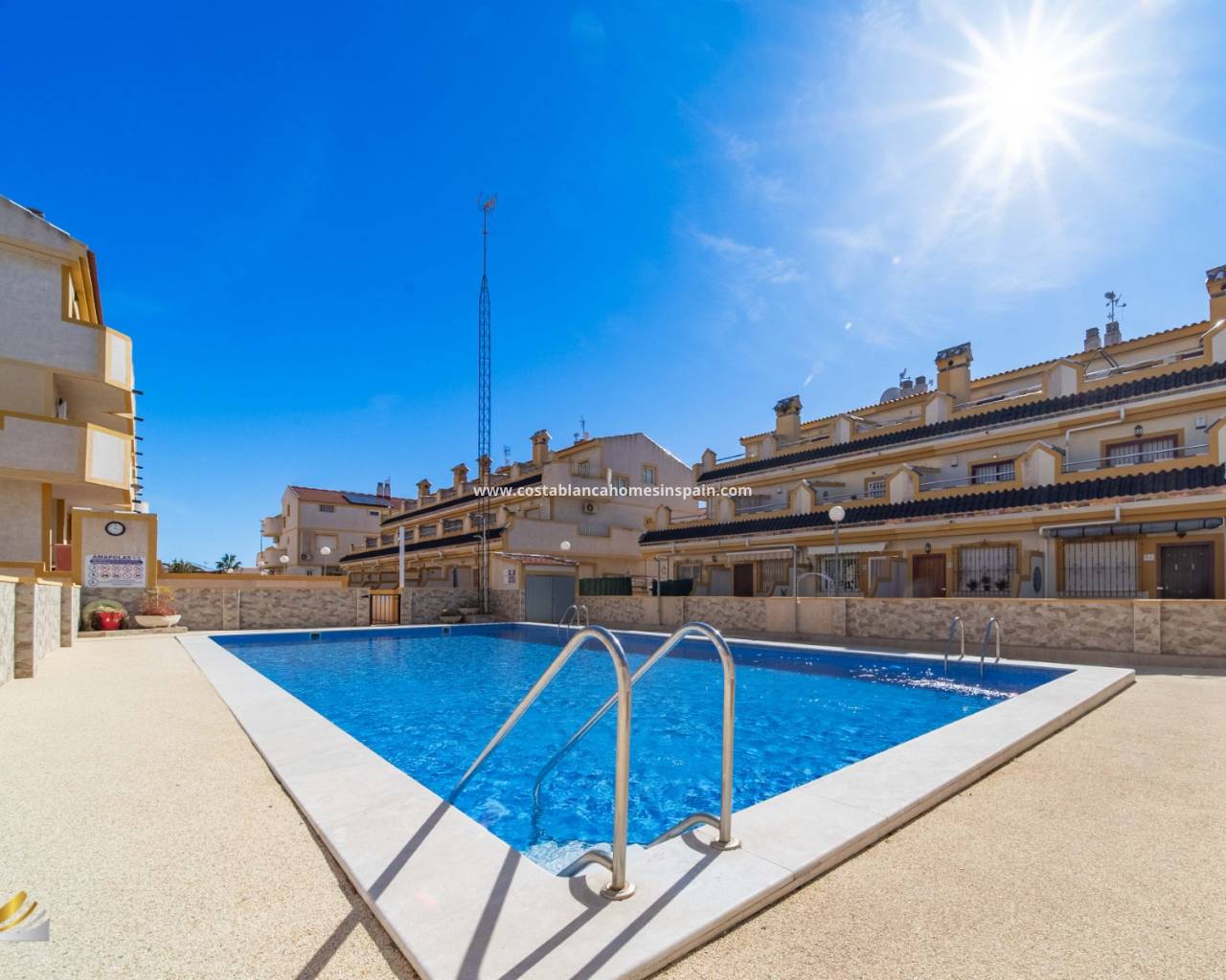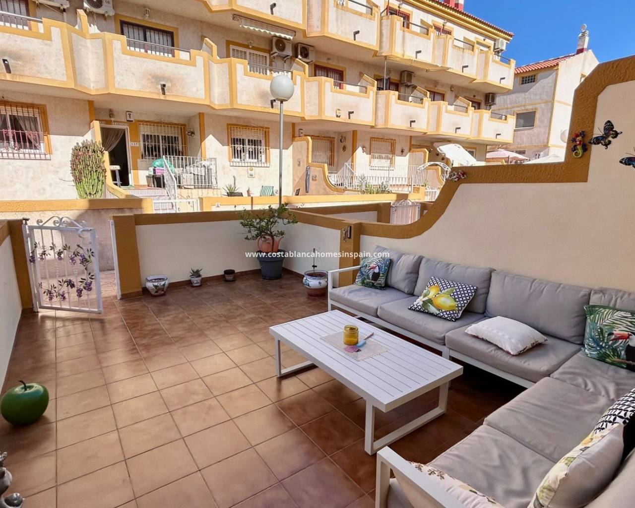 Situated within a secure gated development in Las Chismosas, Playa Flamenca, this spacious 3-bedroom, 2-bathroom townhouse is perfectly located within walking distance to restaurants, shops, and cafe bars. The fabulous La Zenia Boulevard Shopping Center, numerous golf courses, and pristine sandy beaches are all just a short drive away.
