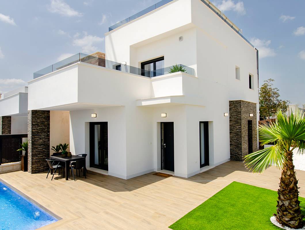 Los exteriores de estas viviendas independientes en Orihuela están diseñados para maximizar el disfrute del entorno. Cada propiedad cuenta con un jardín privado, ideal para crear un oasis personal de tranquilidad. Las terrazas ofrecen un espacio adicional para relajarse o entretener a los invitados, mientras que la opción de un solárium permite disfrutar de vistas panorámicas y del sol durante todo el año. Además, cada vivienda dispone de una piscina privada, perfecta para refrescarse en los días calurosos. La inclusión de una pérgola añade un toque de elegancia y funcionalidad, proporcionando sombra y estilo a los espacios al aire libre.