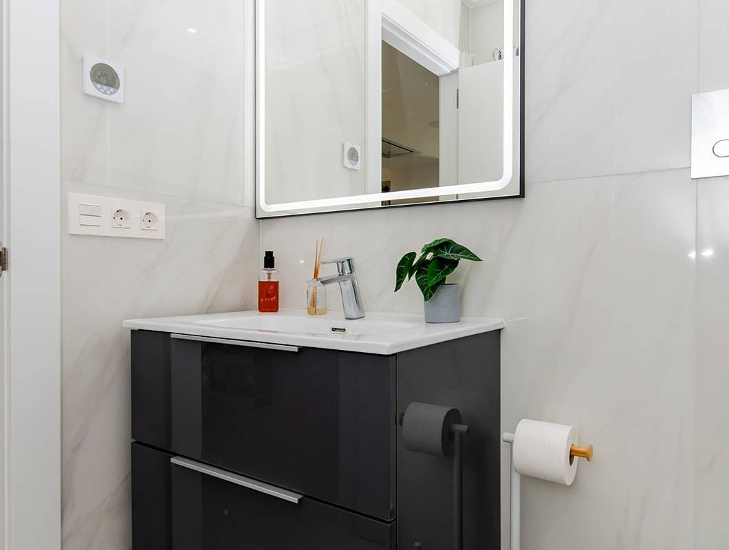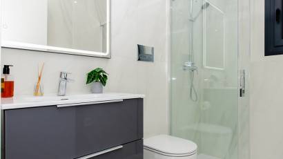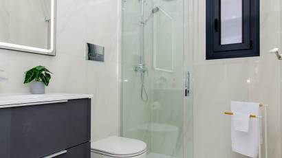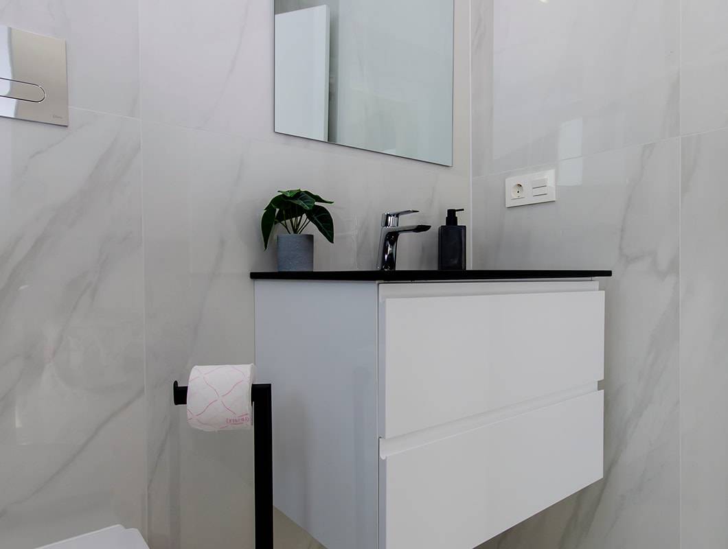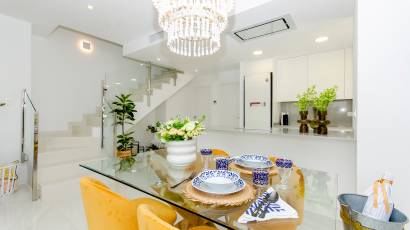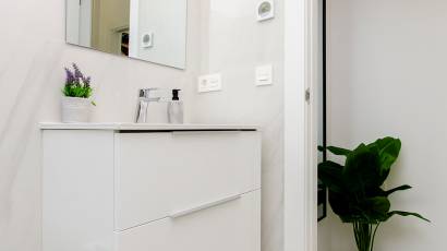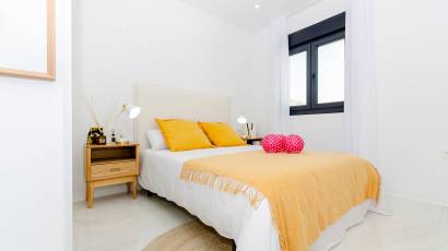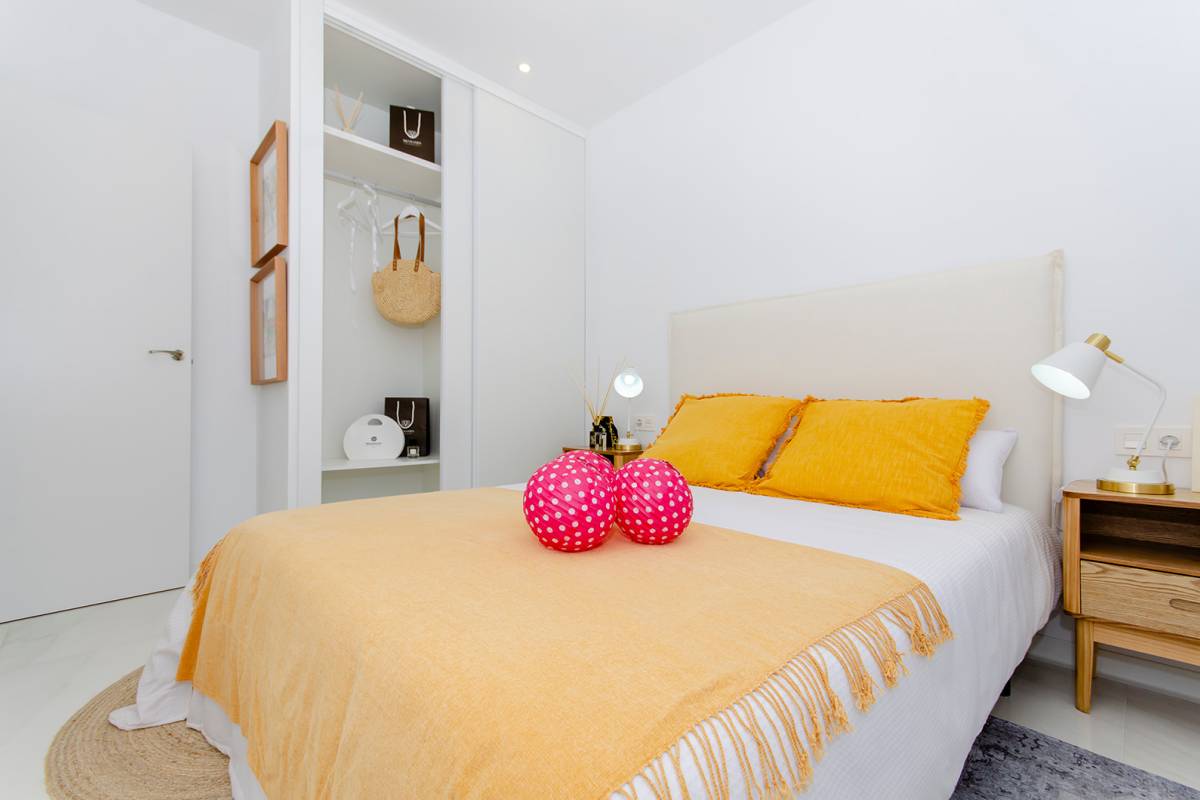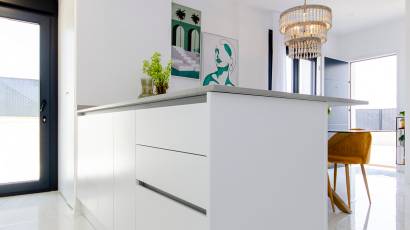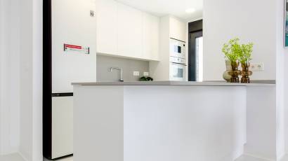 El interior de estas viviendas en Orihuela está diseñado con un enfoque en la comodidad y la funcionalidad. Los suelos de cerámica aportan un toque moderno y son fáciles de mantener. Las viviendas vienen completamente amuebladas, lo que facilita la mudanza y permite disfrutar del nuevo hogar desde el primer día. La cocina está equipada con electrodomésticos de alta calidad, y los armarios empotrados en los dormitorios ofrecen un amplio espacio de almacenamiento. El sistema de aire acondicionado, junto con la preinstalación adicional, asegura un ambiente agradable durante todo el año. Las persianas eléctricas y el videoportero añaden un nivel extra de confort y seguridad.