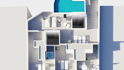 Los exteriores de estas propiedades en Torrevieja están diseñados para maximizar el disfrute del clima mediterráneo. Cada vivienda cuenta con una terraza privada, perfecta para relajarse al aire libre y disfrutar de las vistas. Además, los áticos disponen de un solárium, proporcionando un espacio adicional para tomar el sol o disfrutar de reuniones al aire libre. La cercanía al mar, a solo 300 metros, permite a los residentes disfrutar de paseos costeros y actividades acuáticas en cualquier momento. La opción de un garaje, disponible según tipología, añade comodidad y seguridad para los vehículos.