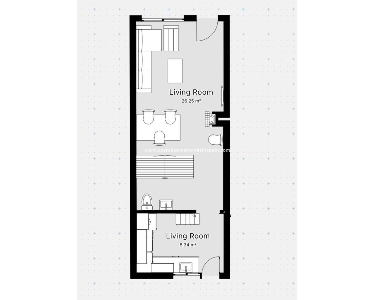 Velkommen til dette pent vedlikeholdte vestvendte rekkehuset, ideelt plassert i det populære området Las Chismosas i Playa Flamenca. Enten du er på utkikk etter en fast bolig, feriebolig eller en investeringsmulighet, tilbyr denne eiendommen god plass, komfort og nærhet til alle fasiliteter.