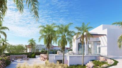Villaens utendørsområde er designet for å maksimere nytelsen av middelhavsklimaet. Den har en privat hage som tilbyr et ideelt grøntområde for fritid og avslapning. Terrassen er perfekt for å nyte utendørs måltider eller bare slappe av i solen. I tillegg har villaen et privat basseng, som gir en personlig oase for å avkjøle seg på varme sommerdager. Den private garasjen sikrer bekvemmelighet og sikkerhet for kjøretøyene, mens muligheten for lading av elbiler gir et moderne og bærekraftig preg.